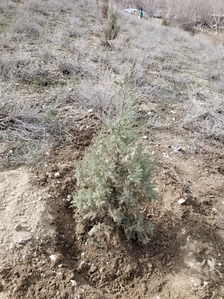 Экологи и любители природы провели посадки фисташки настоящей на опытном участке «Бахча» из семян местных форм древесной породы. Был заложен значительный клин из 150 саженцев. До двадцати прутиков миндаля нашли здесь постоянное место «прописки», и столько же можжевельника туркменского, или арчи. Колючие ёлочки – арча долгое время несёт не хвою, а иголки, возрастом примерно десять лет пополнили существующие посадки, и составляют добрую сотню деревьев. Молодые посадки занимают одну сторону покатого невысокого холма. На посадках трудились как молодые работники, так и пожилые, всем хотелось посадить свою арчу, ну или приложить руки, сообща выгрузить, донести на холм, выбрать место, обиходить лунку, полить. Можно сказать, в результате коллективного труда на каждого участника пришлось по собственной арче, а в целом – по нескольку саженцев, отданных природе. Арча ценная порода, пусть прирастает по 3-5 сантиметров в год, зато живёт 600-800 лет. Запланированные на весну посадки продолжатся до конца марта и возобновятся уже осенью, их объёмы определены в графике рабочих мероприятий экологического министерства.