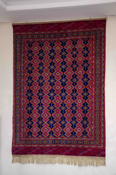Автором представлено более 110 ковровых изделий, поэтому каждый посетитель, пришедший на открытие выставки, ощущал себя как в музее туркменского ковра. Среди многочисленных экспонатов представлены не только прекрасные ковры, но и «чувалы», «энси», «гапылыки», «сачаки». При внимательном рассмотрении этих изделий различаются традиционные орнаменты, украшенные древними изображениями коней, аналогичные коням с Пазырыкского ковра.