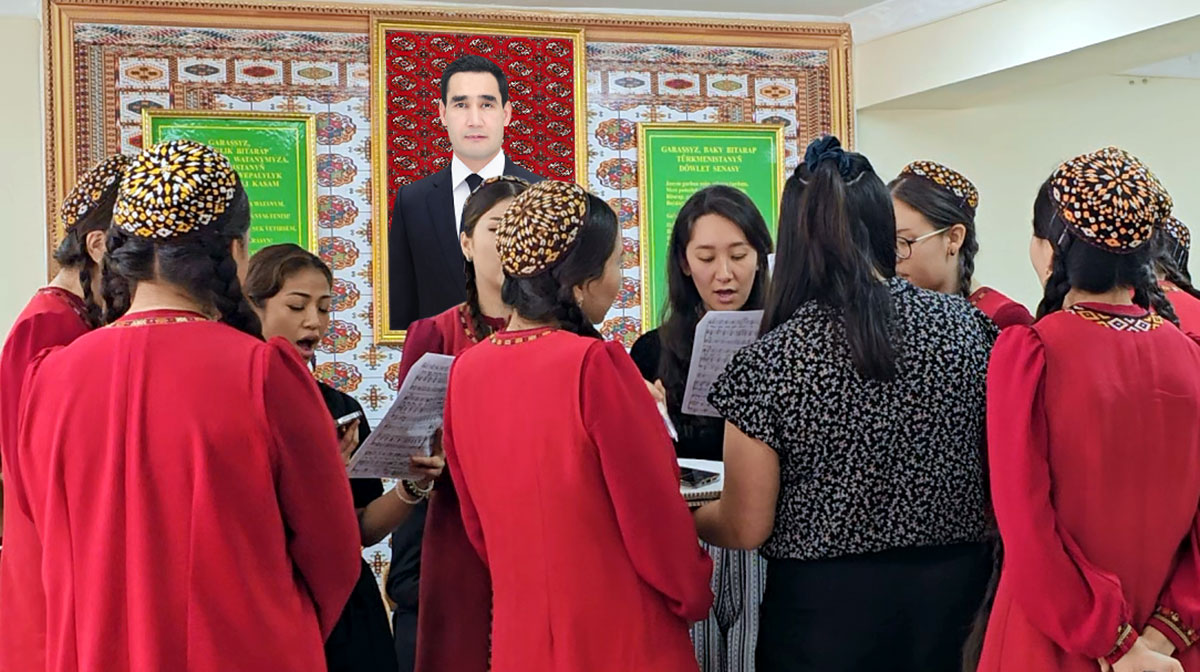 – В этом году наша страна широко отмечает 300-летний юбилей со дня рождения великого поэта и мыслителя Востока Махтумкули Фраги, – говорит руководитель хора Маягозель Амангельдыева. – Наша композиторская школа хранит множество музыкальных сочинений на стихи гения туркменской поэзии. Для презентации на совместном концерте мы решили разучить с зарубежными артистами два известных произведения Вели Ахмедова – «Gözüm düşdi» и «Тürkmeniň».