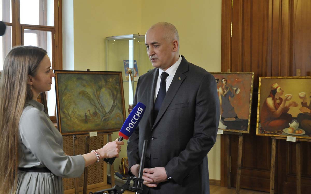 Интонационную поэтичность конференции подчеркивало прозвучавшее декламирование стихов великого мыслителя и поэта, а также музыкальное сопровождение вечера: профессиональные музыканты исполнили песни и романсы туркменских композиторов на стихи Махтумкули. Погрузиться в доверительную атмосферу истинной народности помогла участникам события развернутая в Овальном зале библиотеки импровизированная выставка произведений современного туркменского изобразительного искусства. Гости конференции отдали должное мастерству Народных художников Туркменистана Курбангельды Курбанова, Аннадурды Мурадалиева, Аллаберды Амангельдыева, заслуженного деятеля искусств Коссекмурада Нурмурадова и других известных авторов.