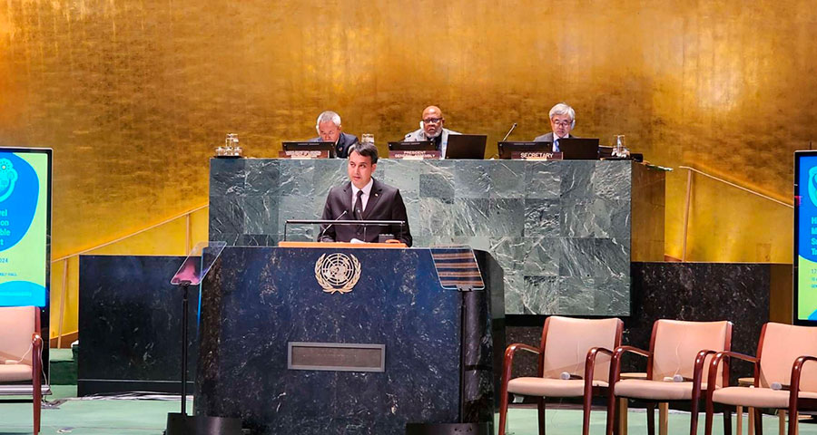17 апреля 2024 года в зале Генеральной Ассамблеи ООН состоялось, инициированное Туркменистаном, Заседание высокого уровня по сотрудничеству в области устойчивого транспорта.