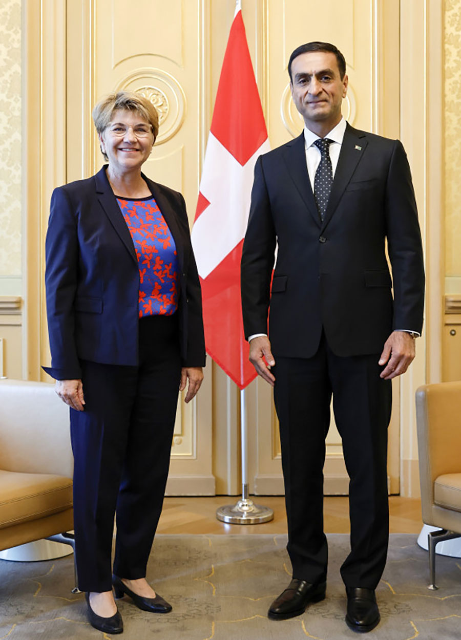 В начале беседы Посол передал слова приветствия и наилучшие пожелания от имени Президента Туркменистана Сердара Бердымухамедова и Национального Лидера туркменского народа, Председателя Халк Маслахаты Туркменистана Гурбангулы Бердымухамедова, направленные в адрес Президента Швейцарской Конфедерации, а также подтвердил заинтересованность туркменской стороны в стремлении к углублению дружественных отношений между Туркменистаном и Швейцарией в различных областях.