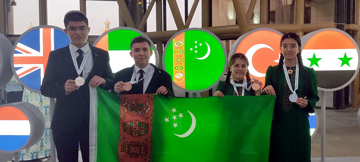 Четверо учеников специализированной школы-интерната имени Сапармурата Туркменбаши города Ашхабада успешно выступили на 56-й Международной химической олимпиаде, которая прошла с 21 по 30 июля в Эр-Рияде (Саудовская Аравия). Каждый из членов туркменской команды смог завоевать награду крупнейшего соревнования по химии среди школьников, добавив в копилку наград юных химиков страны две серебряные и две бронзовые медали.