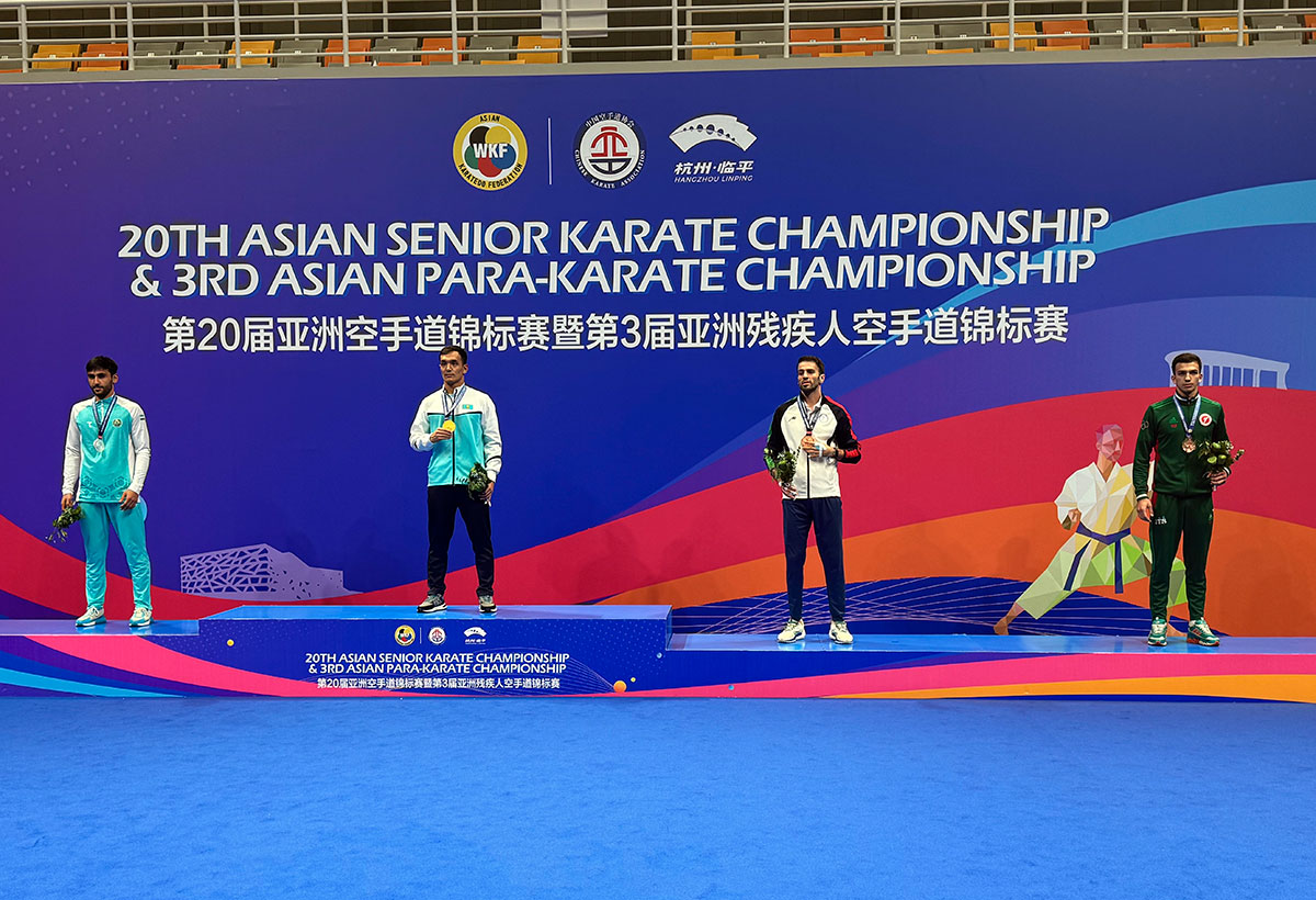 Бронзовую медаль завоевал туркменский спортсмен Давут Назмырадов на завершившемся сегодня в Ханчжоу (Китай) 20-м чемпионате Азии по карате WKF среди взрослых спортсменов.
