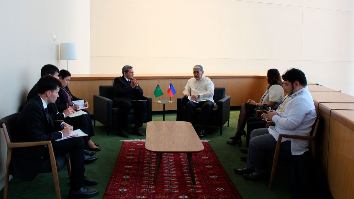 В этот же день Министр иностранных дел Туркменистана Рашид Мередов и Министр иностранных дел Филиппин Энрике Манало обсудили актуальные вопросы двустороннего и многостороннего сотрудничества. Стороны выразили взаимную заинтересованность в дальнейшем укреплении отношений и расширении партнерства в различных сфераОсобое внимание было уделено активизации политического диалога. Была подчеркнута важность проведения регулярных политических консультаций на уровне заместителей министров иностранных дел. Рассмотрены возможности наращивания сотрудничества в экономической и культурно-гуманитарной сферах.