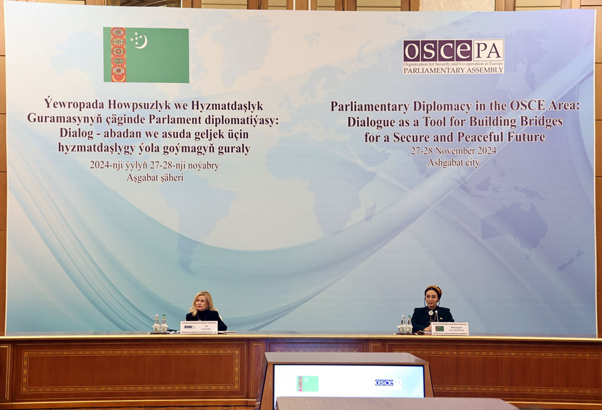Сегодня в столичном отеле «Ýyldyz» состоялась церемония открытия 2-й Ашхабадской конференции «Парламентская дипломатия в пространстве ОБСЕ: диалог – инструмент установления сотрудничества для благополучного и мирного будущего», организованная Меджлисом Туркменистана совместно с Парламентской Ассамблеей Организации по безопасности и сотрудничеству в Европе (ПА ОБСЕ).