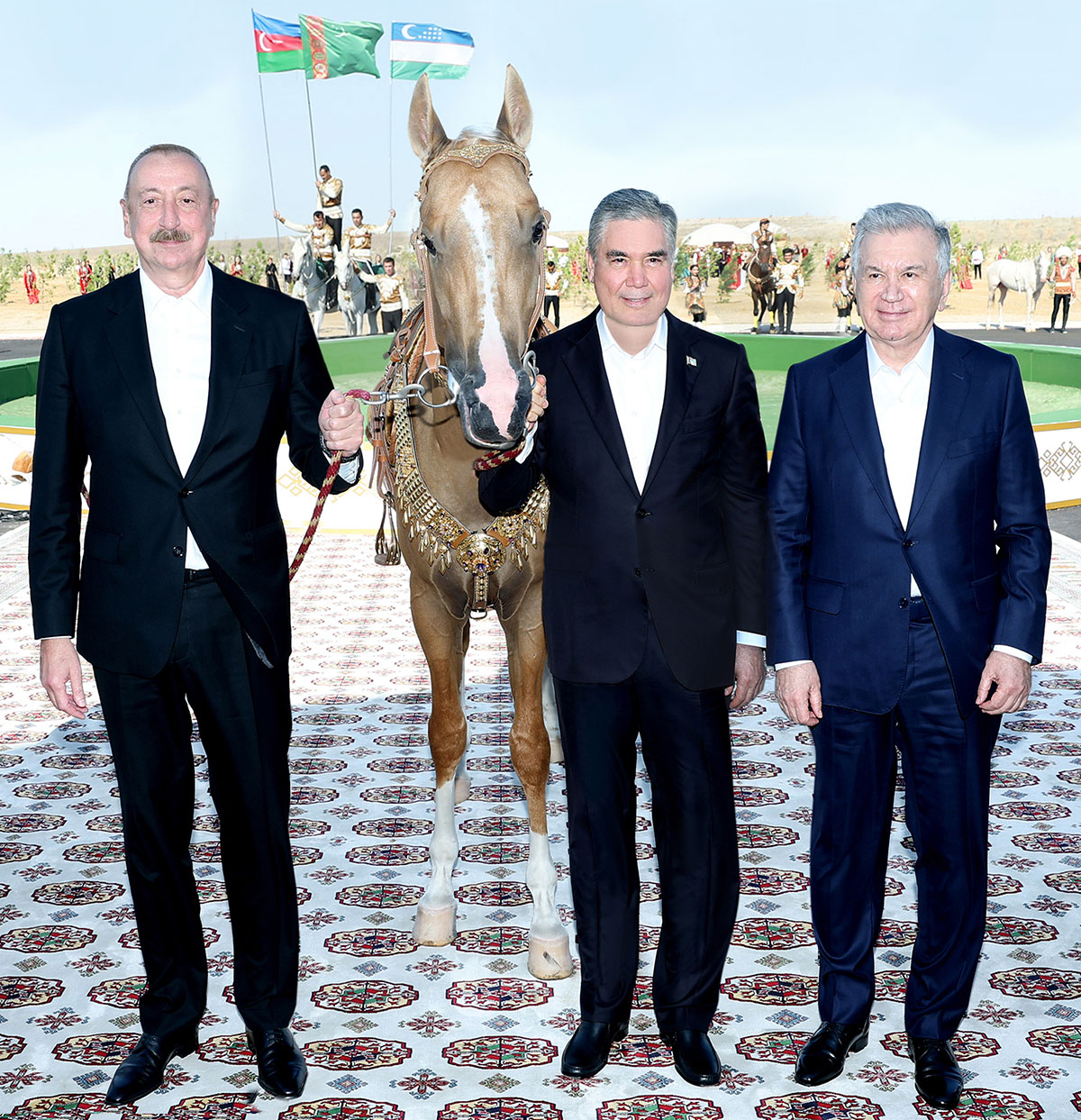 По завершении пресс-конференции Герой-Аркадаг, Президент Азербайджанской Республики и Президент Республики Узбекистан совместно проследовали к месту проведения культурного мероприятия, запланированного в честь трёхсторонней встречи на высшем уровне.