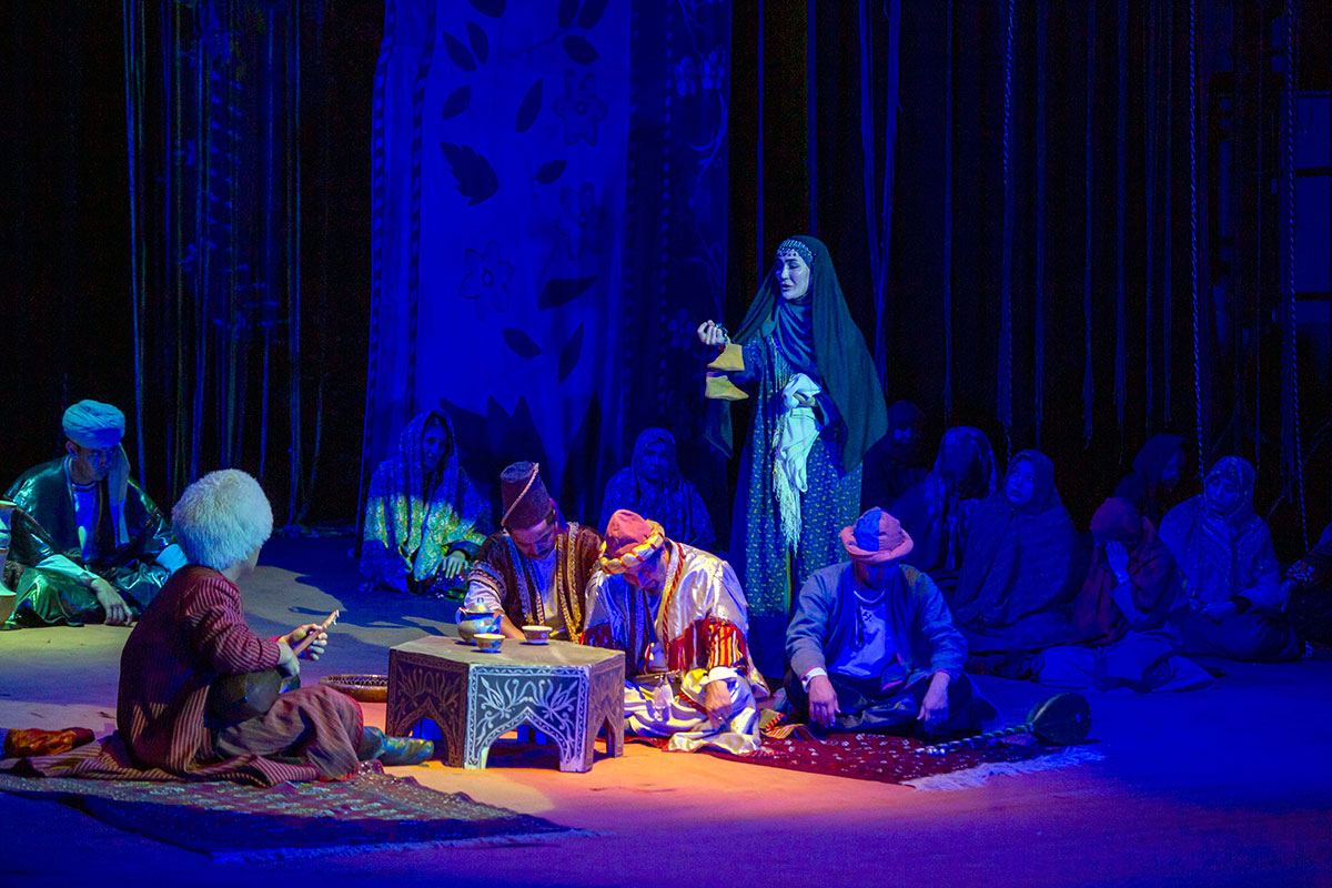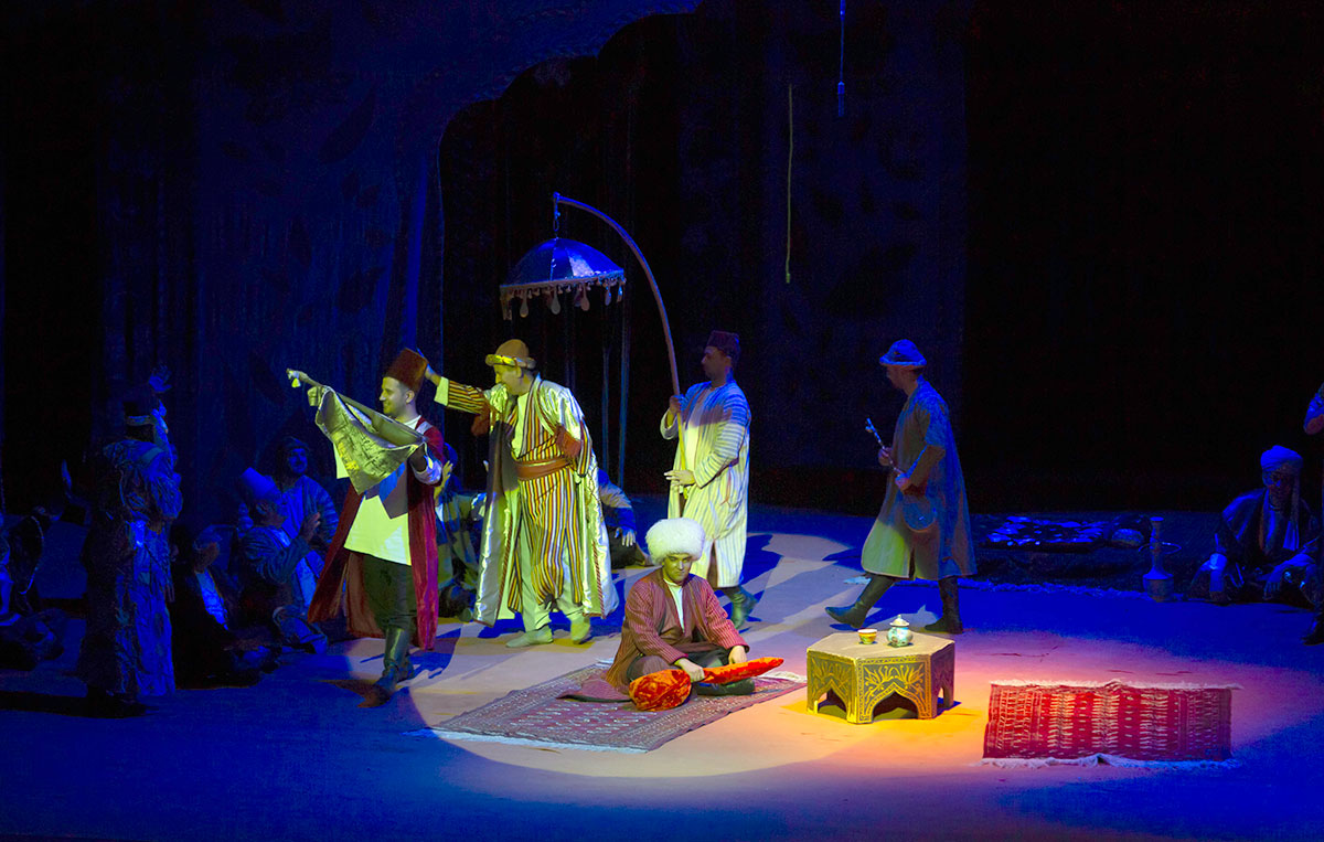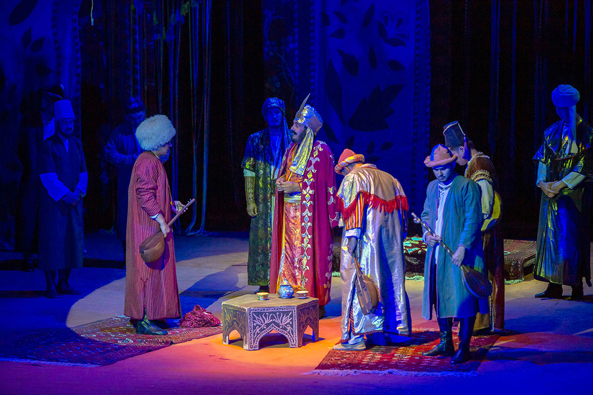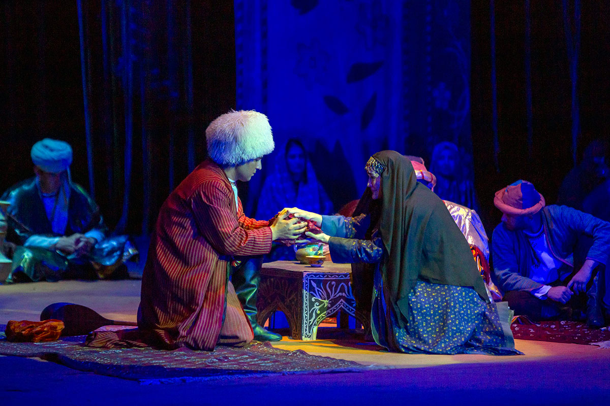 Спектакль был поставлен в 2019 году народным артистом Туркменистана Какаджаном Ашировым. Исполнителем главной роли режиссер взял не артиста, а профессионального музыканта – Ресула Барыева, проживающего в городе Сердар, так как считал главным действующим лицом в этой истории музыку Шукура-бахши. Результат превзошел себя. Однако организационные вопросы с иногородним исполнителем давали сбои, и пришлось искать ему замену в своем коллективе. Нужен был приятной внешности молодой человек, играющий на дутаре. Выбор пал на Сердара Артыкова, который «дружил» с гитарой, дутаром, клавишными и эстрадным вокалом.