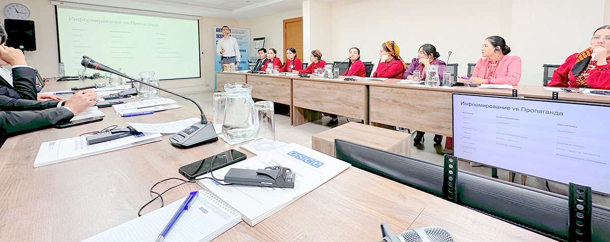 Как отражать внешние угрозы, различать достоверный медиаконтент и противостоять пропаганде насильственного экстремизма – эти вопросы стали ключевыми на тренинге, организованном Центром ОБСЕ в Ашхабаде совместно с Антитеррористическим подразделением Департамента ОБСЕ по противодействию транснациональным угрозам.