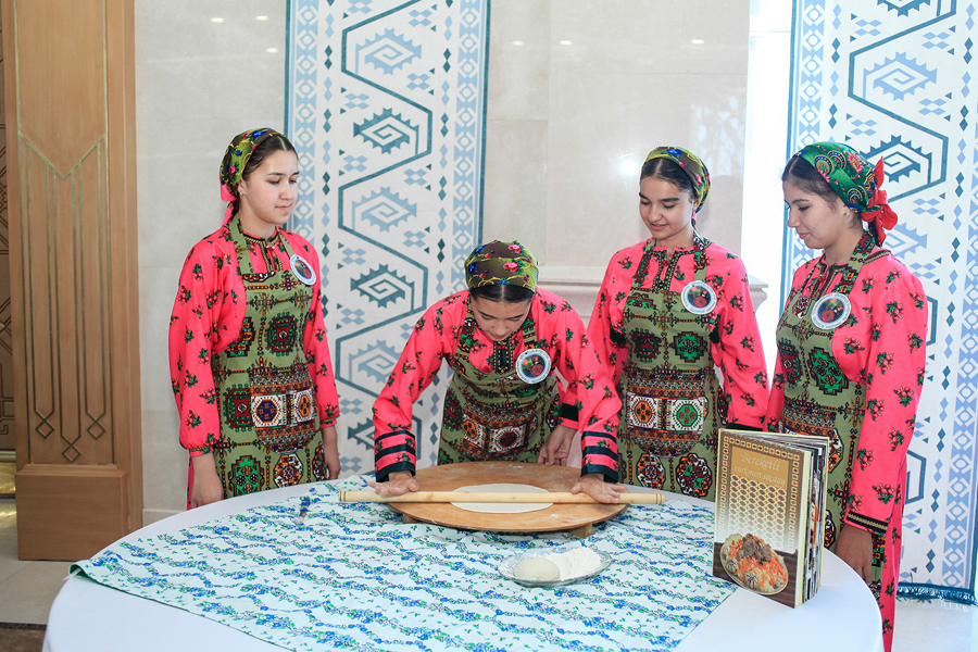 Также в ходе конкурса они продемонстрировали свое мастерство в выполнении различных видов рукоделия, в ковроткачестве и в украшении сачаков. Интересными были и выступления о значении и способах приготовления блюд, которые подготовили умелые представительницы молодого поколения, юные таланты, основываясь на книге «Bereketli türkmen saçagy» («Туркменский дестархан»).Изложение достоинств национальных блюд в форме выражений, пословиц и газелей оставили незабываемые приятные впечатления у участников конкурса.