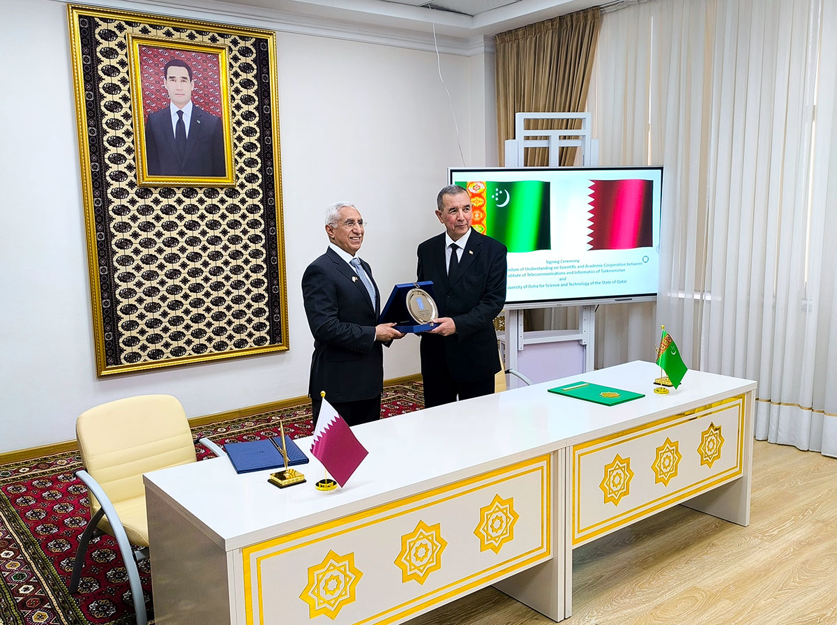 Duşuşygyň çäklerinde Türkmenistanyň Telekommunikasiýalar we informatika instituty bilen Kataryň Doha Ylymlar we tehnologiýalar uniwersitetiniň arasynda ylmy-akademiki hyzmatdaşlyk boýunça özara düşünişmek hakynda Ähtnama gol çekmek dabarasy geçirildi.