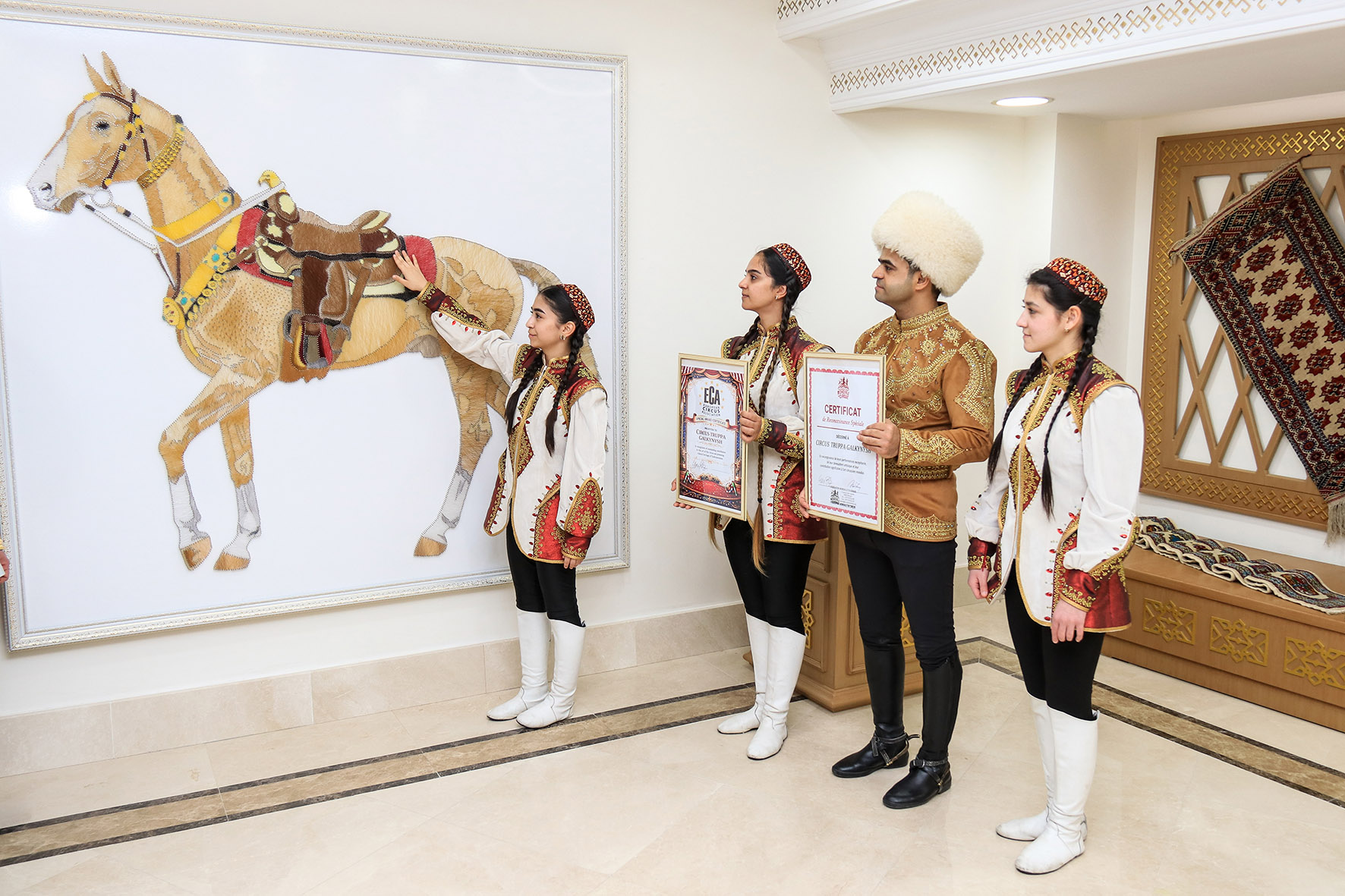 Arzyly myhmanlary güler ýüzli, düz-çörekli, dabaraly ýagdaýda garşy almagam halkymyzyň öňden gelýän asylly däbi. Şeýle däbe eýerilip, Balkan welaýat Taryhy we ülkäni öwreniş muzeýiniň öňünde tutulan dabara-da baý mazmuna, egsilmez ruhy joşguna beslendi. Bu ýerde Beýik Saparmyrat Türkmenbaşy adyndaky Balkan welaýat döwlet drama teatrynyň artistleri «Bedew batly at-myradyň mekany, bagta besläp Arkadagly zamany» diýen edebi-sazly çykyşy ussatlyk bilen ýerine ýetirdiler. Kalplarda unudylmajak täsirleri galdyran «At çapar» sazynyň tansyny hem Günbatar sebitiň meşhur «Dehistan» «Dagdan», «Misserian», «Bagtyýarlyk», «Miras», «Balkan» döredijilik toparlarynyň çykyşlary bezedi.