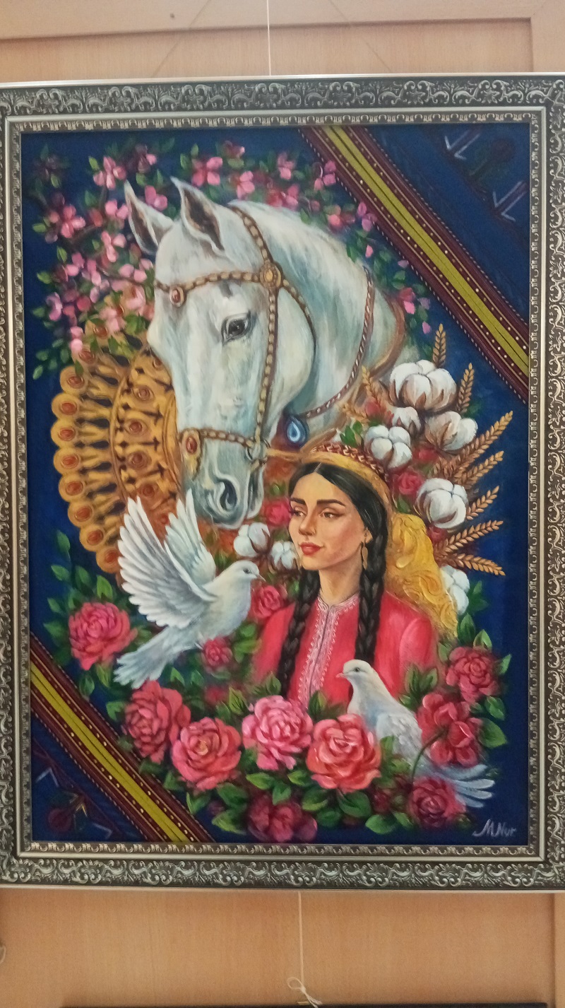 Daşoguz welaýatynyň taryhy we ülkäni öwreniş muzeýinde geçirilen serginiň esasy gymmatlyklary Daşoguz şäheriniň çagalar çeperçilik mekdebiniň okuwçylarynyň we mugallymlarynyň eserleri boldy. Bu işlerde gözelligi we syraty boýunça deňi-taýy bolmadyk ahalteke bedewleri şekillendirilýär.