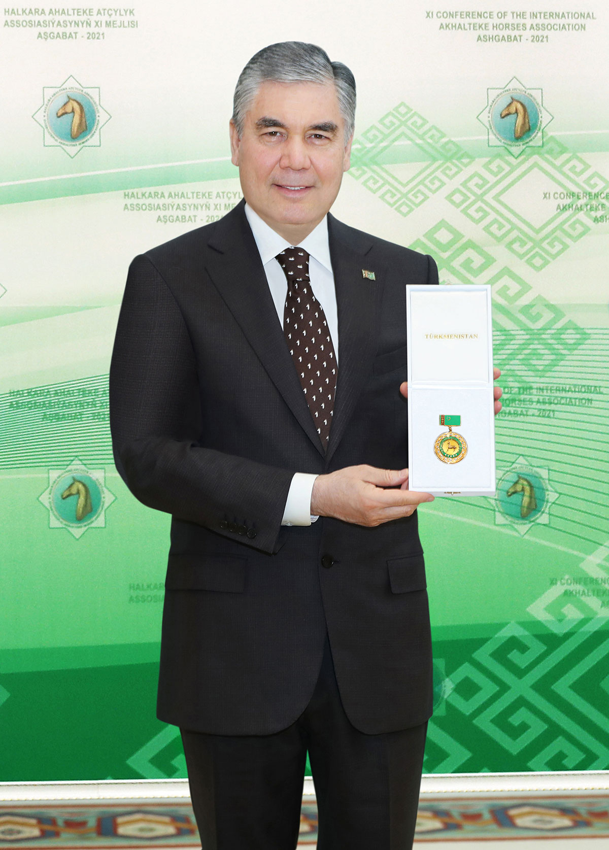 Halkymyzyň ýelden ýüwrük bedewleriniň şan-şöhratyny dikeltmekde, dünýä ýaýmakda, atly sporty we atçylyk pudagyny ösdürmekde, ahalteke atlarynyň tohumçylyk işini, olaryň syna owadanlygyny kämilleşdirmekde, ösüp gelýän ýaş nesillerimizde atçylyk sungatyna bolan höwesi döretmekde, atlary seýislemekde bitiren aýratyn uly hyzmatlary, şeýle hem «Türkmen atlary» döwlet birleşiginiň towakganamasy we giň halk köpçüliginiň isleg-arzuwlary göz öňünde tutulyp, milli Liderimize Türkmenistanyň «Türkmenistanyň ussat halypa seýsi» diýen hormatly ady dakyldy.