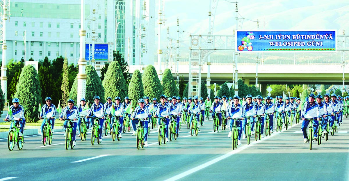 Döwlet Baştutanymyzyň belleýşi ýaly, saglyk we sport, ekologiýa abadançylygy hem-de durnukly ösüş biri-biri bilen berk baglanyşykly düşünjelerdir. Jemgyýetde sagdyn we işjeň durmuş, daşky gurşawa aýawly garamak ýörelgelerini pugtalandyrmak maksady bilen, hormatly Prezidentimiz Gurbanguly Berdimuhamedow möhüm başlangyçlaryň birnäçesiniň we şonuň bilen birlikde, peýdaly däpleriň, şol sanda watandaşlarymyzyň müňlerçesini — ähli ýaşdaky we hünärdäki wekilleri birleşdirýän welosipedli ýörişleri yzygiderli geçirmek däbiniň başyny başlady. Golaýda Bütindünýä saglyk güni hem-de Aşgabadyň 140 ýyllygy mynasybetli geçirilen sport çäreleri munuň aýdyň subutnamasydyr.