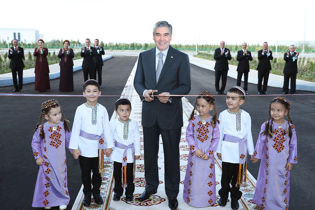Döwlet Baştutanymyzy çagalar joşgunly goşgy setirleri bilen garşylaýarlar. Täze gurlan döwrebap binalaryň her biriniň ýanynda ussat aýdymçylaryň we artistleriň çykyşlary ýaýbaňlandyryldy. Olarda türkmen halkynyň toý dessurlary, ajaýyp däpleri öz beýanyny tapdy.