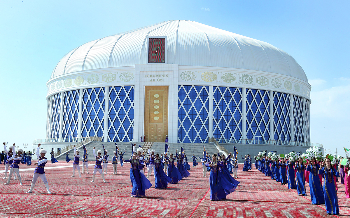“Türkmeniň ak öýi” binasynyň öňündäki meýdançada baýramçylyk ýagdaýy emele gelip, bu ýere köp sanly dabara gatnaşyjylar ýygnandylar.