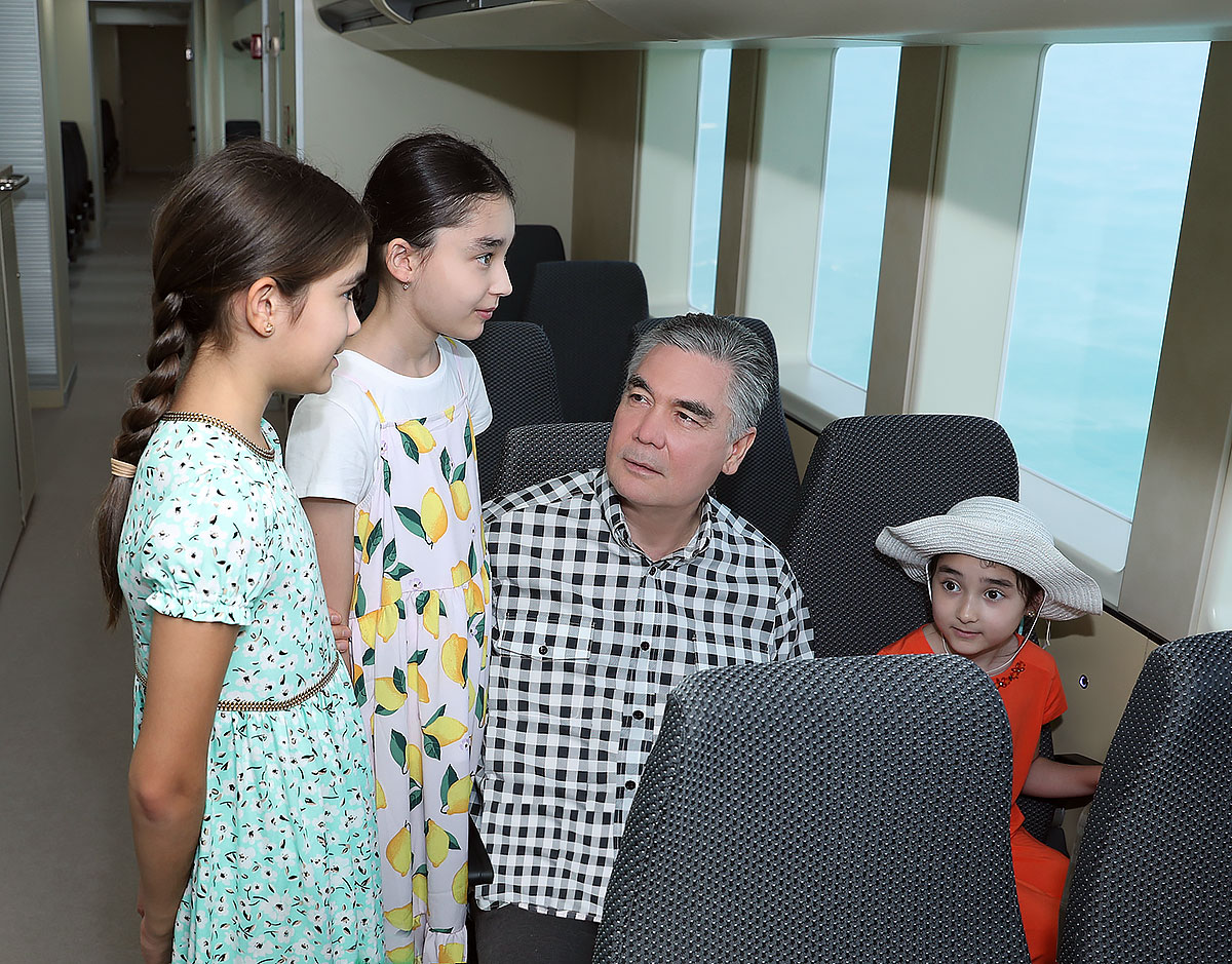 Milli Liderimiz agtyklarynyň çeper döredijilik bilen meşgullanýandyklaryna guwanýandygyny aýdyp, olara gojaman Hazaryň taryhy, bu künjegiň tebigy aýratynlyklary hem-de deňziň ösümlik we haýwanat dünýäsiniň özboluşlylygy barada gürrüň berdi. Bu gürrüňleri uly höwes bilen diňleýän körpeler atalaryna — döwlet Baştutanymyza özlerini gyzyklandyrýan sowallaryny berdiler. Milli Liderimiz agtyklarynyň sowallaryna uly höwes bilen jogap berdi. Söhbetdeşlik bagtyýar nesilleriň türkmen topragyna, tebigat gözelliklerine bolan söýgüsiniň aýdyň beýanyna öwrüldi.