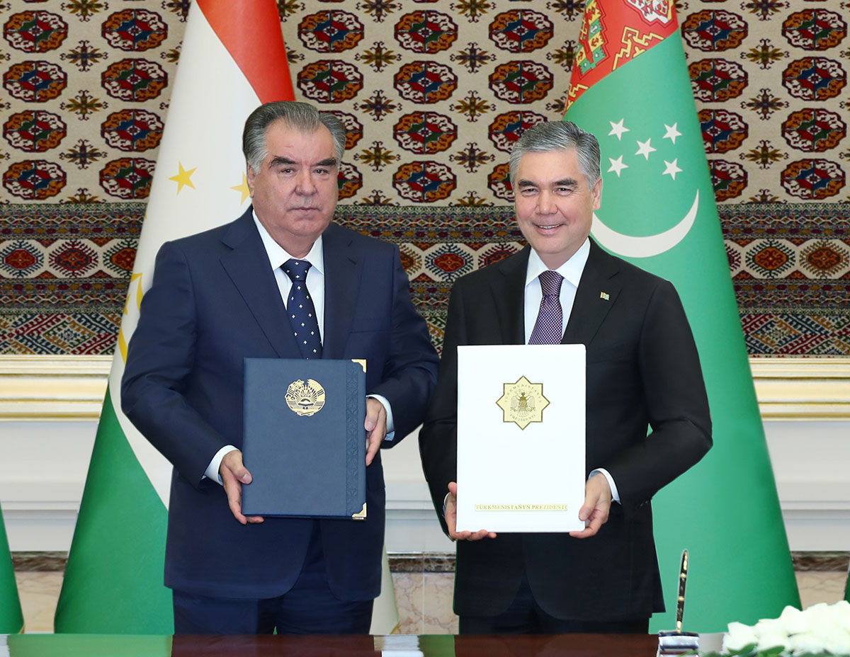 Türkmenistanyň Hökümeti bilen Täjigistan Respublikasynyň Hökümetiniň arasynda 2022-2023-nji ýyllarda haryt dolanyşygyny köpeltmek barada «Ýol kartasyna»; Türkmenistanyň Söwda-senagat edarasy bilen Täjigistan Respublikasynyň Söwda-senagat edarasynyň arasynda işewürler geňeşini döretmek hakynda Ylalaşyga; Önümçilik kooperasiýasy hakynda Türkmenistanyň Hökümeti bilen Täjigistan Respublikasynyň Hökümetiniň arasynda Ylalaşyga; Syýahatçylyk babatda hyzmatdaşlyk etmek hakynda Türkmenistanyň Hökümeti bilen Täjigistan Respublikasynyň Hökümetiniň arasynda Ylalaşyga; Medeniýet we sungat babatda 2022 — 2024-nji ýyllarda Türkmenistanyň Hökümeti bilen Täjigistan Respublikasynyň Hökümetiniň arasynda hyzmatdaşlyk etmegiň Maksatnamasyna; Demir ýol ulagy babatda hyzmatdaşlyk etmek hakynda Türkmenistanyň Hökümeti bilen Täjigistan Respublikasynyň Hökümetiniň arasynda Ylalaşyga; Türkmenistanyň Hökümeti bilen Täjigistan Respublikasynyň Hökümetiniň arasynda ýolagçylaryň we ýükleriň üstaşyr daşalmagy hakynda Ylalaşyga; Nebit önümlerini we suwuklandyrylan uglewodorod gazyny ibermek hakynda Türkmenistanyň Hökümeti bilen Täjigistan Respublikasynyň Hökümetiniň arasynda Ylalaşyga; Gurluşyk işini amala aşyrmak üçin ygtyýarnamalary özara ykrar etmek hakynda Türkmenistanyň Hökümeti bilen Täjigistan Respublikasynyň Hökümetiniň arasyndaky Ylalaşygy durmuşa geçirmek boýunça bilelikdäki çäreleriň Meýilnamasyna; Türkmenistanyň Içeri işler ministrligi bilen Täjigistan Respublikasynyň Prezidentiniň ýanyndaky neşe serişdelerine gözegçilik Agentliginiň arasynda hyzmatdaşlyk etmek hakyndaky Ylalaşyga; Ahal welaýat häkimligi bilen Täjigistan Respublikasynyň Sugt oblastynyň döwlet häkimiýetiniň ýerine ýetiriji edarasynyň arasynda hyzmatdaşlyk etmek hakynda Ylalaşyga; Türkmenistanyň Prezidentiniň ýanyndaky Döwlet gullugy akademiýasy bilen Täjigistan Respublikasynyň Prezidentiniň ýanyndaky Döwlet dolandyryş akademiýasynyň arasynda hyzmatdaşlyk etmek hakynda Ylalaşyga; Ýaşlar syýasaty babatda hyzmatdaşlyk etmek hakynda Türkmenistanyň Hökümeti bilen Täjigistan Respublikasynyň Hökümetiniň arasynda Ylalaşyga; 1999-njy ýylyň 30-njy dekabryndaky Türkmenistanyň Hökümeti bilen Täjigistan Respublikasynyň Hökümetiniň arasynda raýatlaryň birek-birege gitmekleri hakyndaky Ylalaşyga üýtgeşmeleri we goşmaçalary girizmek hakyndaky Teswirnama; Türkmenistanyň Daşary işler ministrligi bilen Täjigistan Respublikasynyň Daşary işler ministrliginiň arasynda 2021 — 2023-nji ýyllar üçin hyzmatdaşlyk etmegiň Maksatnamasyna; Türkmenistanyň Suw hojalygy baradaky döwlet komiteti bilen Täjigistan Respublikasynyň Energetika we suw serişdeleri ministrliginiň arasynda hyzmatdaşlyk etmek hakyndaky Ähtnama gol çekildi.