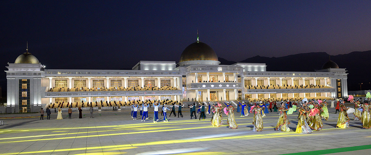 Meýdançada sahnalaşdyrylan dabara başlanýar. Oňa paýtagtymyzyň döredijilik toparlary gatnaşýarlar. Aýdymçylar we sazandalar öz çykyşlarynda eziz Watanymyzy hem-de milli Liderimiziň beýik işlerini, täze taryhy eýýamyň ruhubelentligini, hormatly Prezidentimiz Gurbanguly Berdimuhamedowyň baştutanlygynda okgunly ösüş ýolunda gazanylan ägirt uly üstünlikleri, giň gerimli özgertmeleri, türkmen halkynyň jebisligini we bitewüligini wasp edýärler.