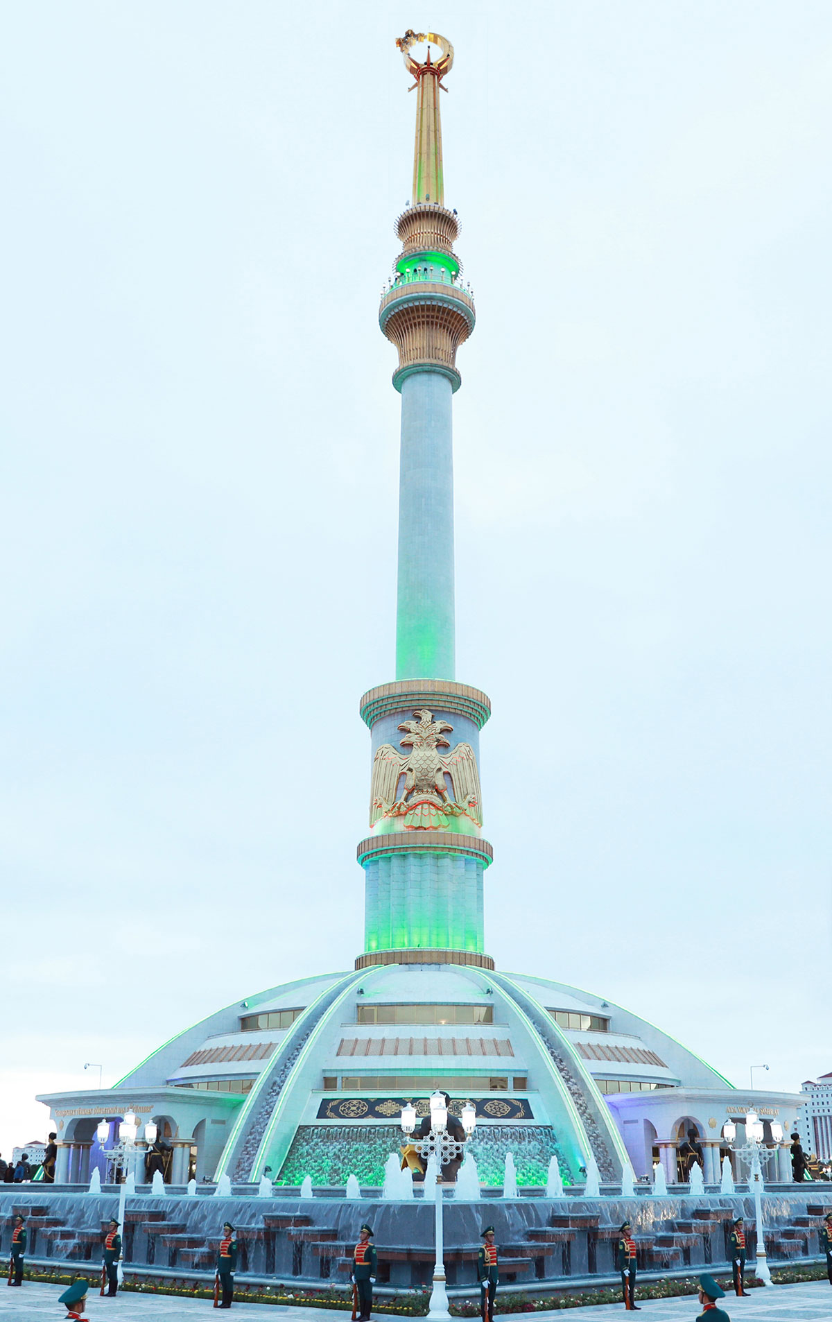 Türkmenistanyň Döwlet senasy ýaňlanýar. Hormatly Prezidentimiz dabaraly ýagdaýda binanyň etegine ajaýyp gül çemenini goýdy. Binada halkymyzyň erkinlik we garaşsyzlyk baradaky arzuwyna ýetmeginiň köpasyrlyk ýoly barada gürrüň berýän gymmatly ýadygärlikler saklanýar.