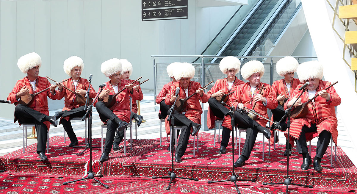 Milli bölümimiz bilen tanyşlygyň ahyrynda milli Liderimiz Gurbanguly Berdimuhamedow hem-de dabara gatnaşyjylar üçin Maýa Kulyýewa adyndaky Türkmen milli konserwatoriýasynyň dutarçylar toparynyň ýerine ýetirmeginde ajaýyp halk mukamlary ýaňlanyp, olar “EKSPO — 2020” Bütindünýä sergisinde ýurdumyzyň milli gününiň özboluşly aýdym-saz öwüşginine öwrüldi.