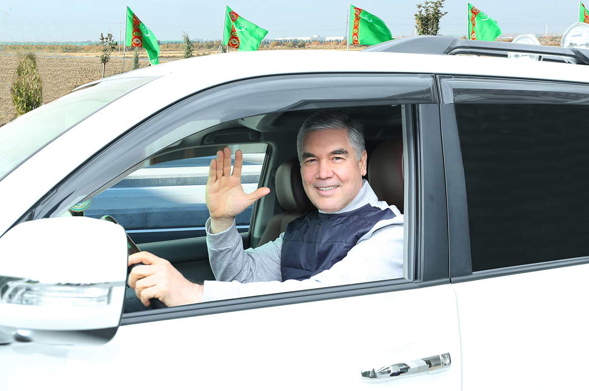Döwlet Baştutanymyz indi köp ýyllaryň dowamynda awtomobil sürmek bilen meşgullanýandygyny, dünýäniň meşhur önüm öndürijileriniň dürli täze kysymly ulaglaryny synap görýändigini nygtap, täze awtoulaga münüp, ýokary tizlikli ýol boýunça hereketini dowam etdirdi.