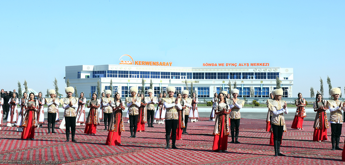 Bu ýerde aýdym-sazly çykyşlar ýaýbaňlandyrylýar. Welaýatyň döredijilik toparlarynyň ýerine ýetirmeginde ajaýyp aýdym-sazlar ýaňlanýar, joşgunly tanslar ýerine ýetirilýär. Soňra milli Liderimiz şol ýerde gurlan, “Kerwensaraý” diýlip atlandyrylan iki gatly söwda merkezine barýar. Bu ýerde sürüjiler we ýolagçylar üçin ähli şertler döredilipdir. Toplumyň düzüminde harytlaryň dürli görnüşlerini hödürleýän supermarket, çagalar üçin niýetlenen dürli attraksionly oýun meýdançalary bar. Garbanyşhanada tagamlaryň hem-de içgileriň köp görnüşleri hödürlenilýär. Uly bolmadyk myhmanhana uzak aralyga gatnaýan sürüjileriň hyzmatynda. Bu ýerde göwnejaý dynç almak üçin ähli şertler döredildi.