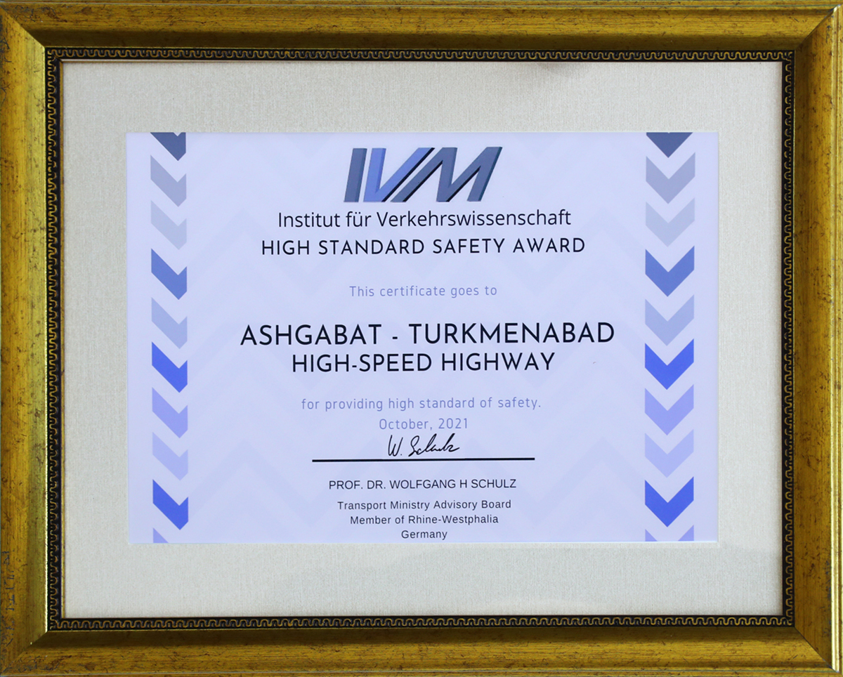 Wolfgang Şults ýokary tizlikli Aşgabat — Türkmenabat awtomobil ýolunyň ýokary howpsuzlyk güwänamasyna mynasyp bolandygyny yglan edip, özüniň wekilçilik edýän institutynyň adyndan şu ýol bilen barýan sürüjilere hem-de ýolagçylara ak ýol arzuw etdi.