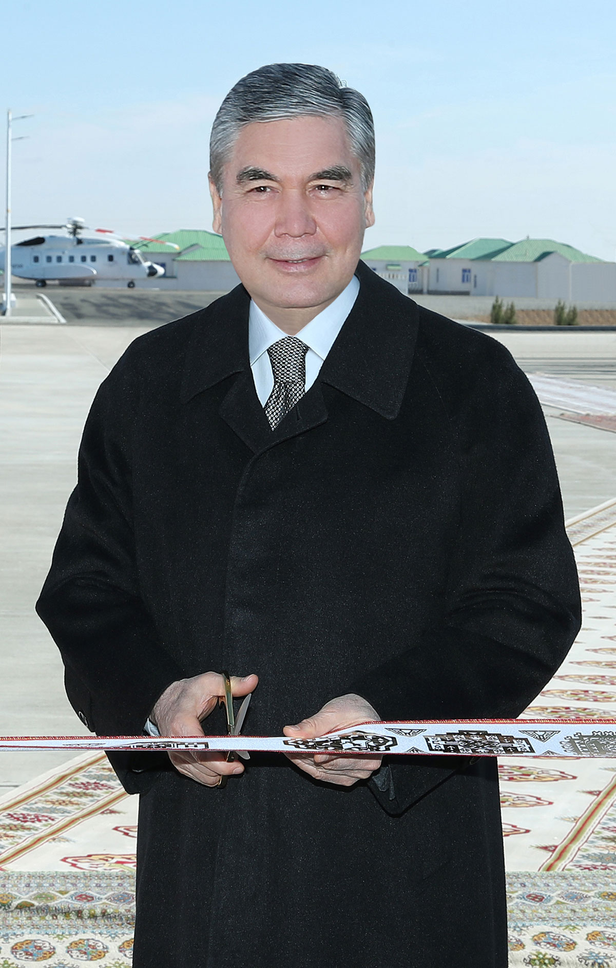 Dokma pudagynyň elleri baýdakly, dürli şarly işgärleriniň, ýaşlaryň hatara düzülen haly düşelen ýodajygy boýunça döwlet Baştutanymyz dabaranyň geçiriljek ýerine geldi.