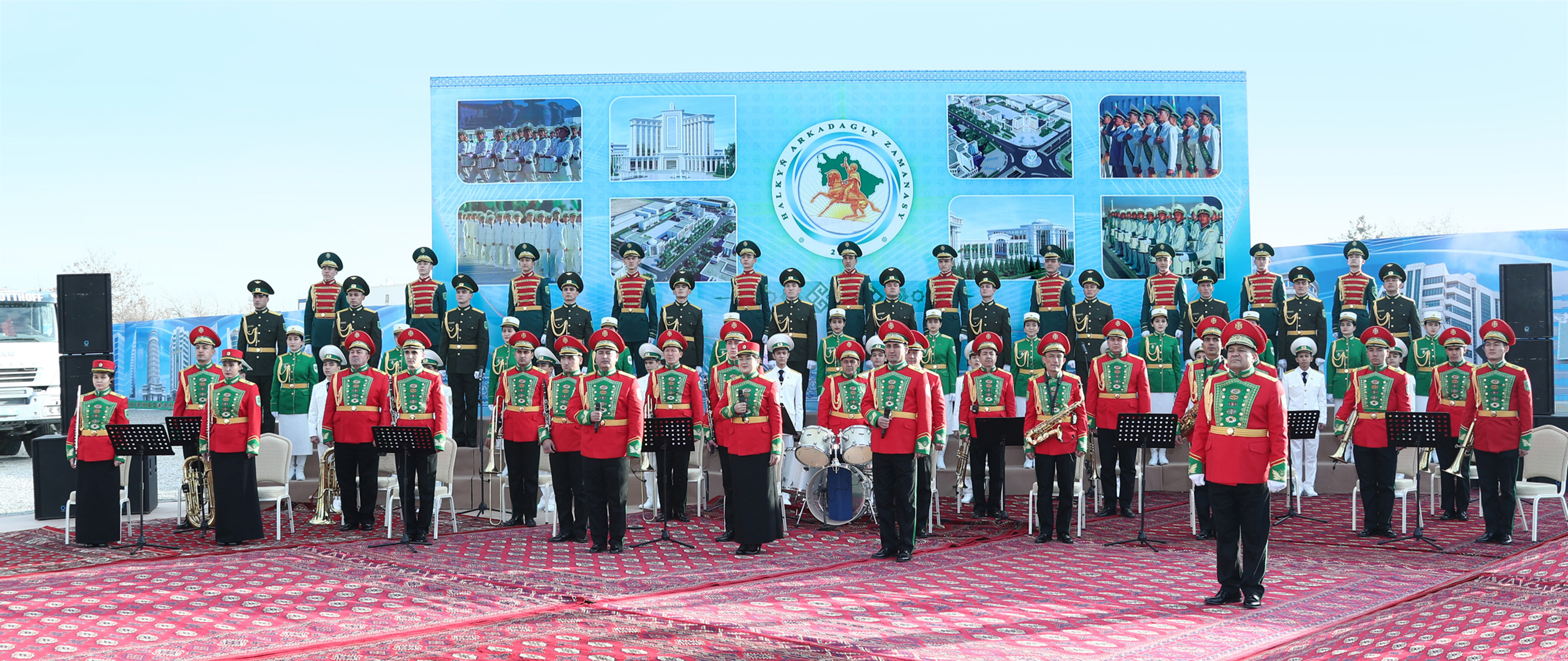 Alp Arslan, Görogly beg, Seýitnazar Seýdi, Şükür bagşy ýaly taryhda yz goýan serkerdeler we gerçekler watansöýüjiligiň, gahrymançylygyň belent nusgasyny görkezip, hemişe parahatçylygyň, asudalygyň goragynda bolupdyr. Olaryň watansöýüjilik ýörelgeleri jadyly sungat hasaplanylýan saz bilen utgaşykly bolupdyr. Munuň özi taryhyň dürli döwürlerinde türkmen topragynda parahatçylyga, aýdym-saza aýratyn gadyr goýlandygyny aňladýar we türkmen halkynyň milli saz diplomatiýasyny döredendigini dünýä aýan edýär diýip, milli Liderimiz belledi hem-de harby orkestriň agzalaryna üstünlik arzuw etdi.