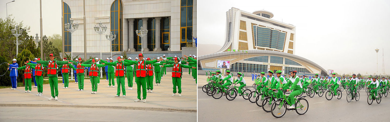 Şu gün paýtagtymyz bilen bir hatarda, welosipedli ýörişler, dürli bedenterbiýe-sagaldyş we sport çäreleri, ýaş türgenleriň görkezme çykyşlary ýurdumyzyň ähli welaýatlarynda-da guraldy.