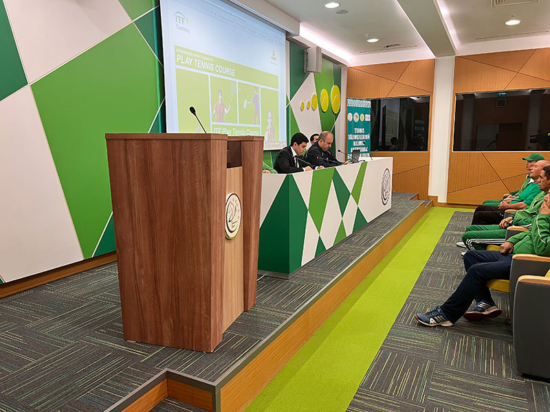 Paýtagtymyzyň Olimpýa şäherçesiniň tennis meýdançalarynda başlanan okuw-maslahata Türkmenistanyň sebitleriniň ählisinden tälimçiler geldiler. Ony halkara tennis federasiýasynyň Aziýa sebiti boýunça bilermeni Amir Borgen geçirýär. Maslahatyň çäklerinde ol tennis meýdançasynda nazary we amaly sapaklaryny geçirer.