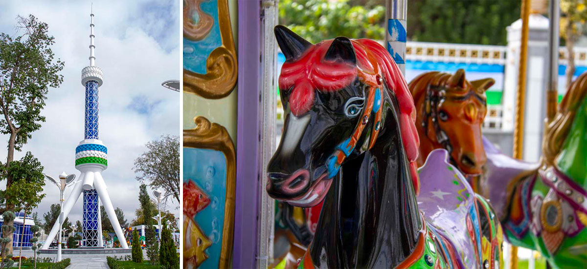 Bu ýerde özbek paýtagtynyň täsin binagärlik desgasy – Daşkent telediňiniň kiçeldilen nusgasyny hem görmek bolýar.