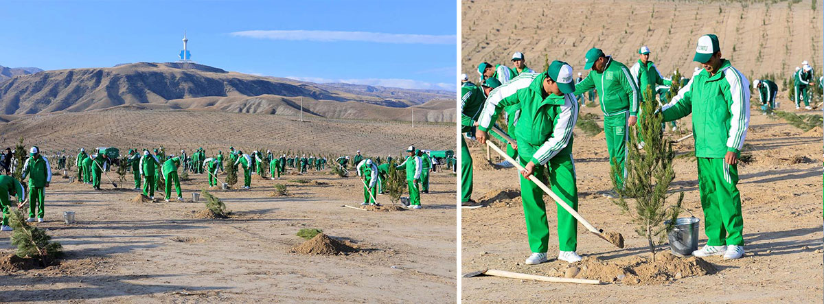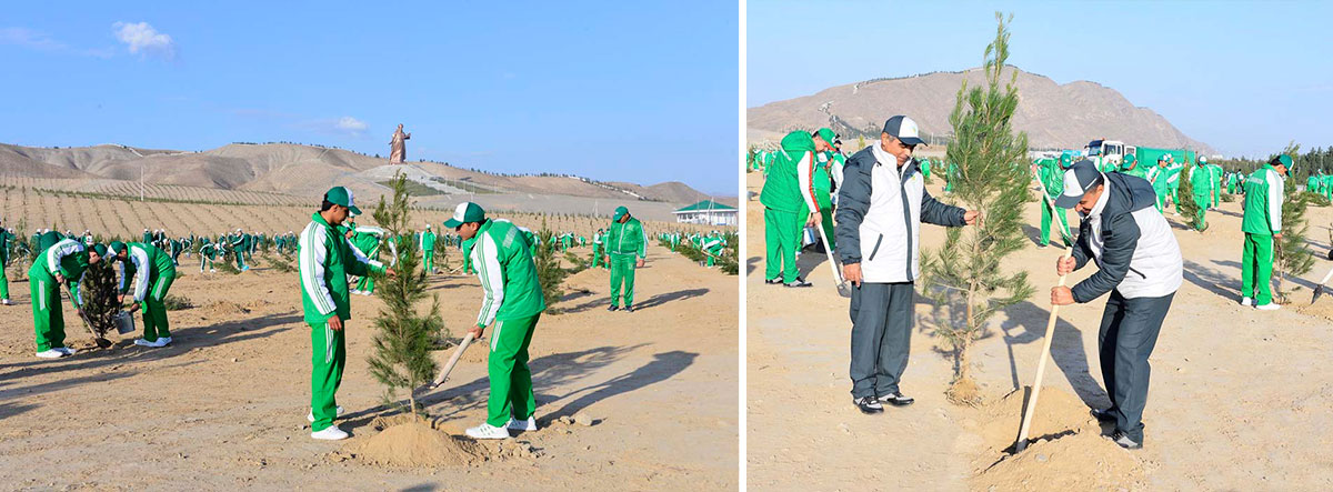 Şu güýz gününde ähli ildeşlerimiz mähriban topragymyzyň “ýaşyl baýlygyny” joşgunly zähmet bilen has-da artdyrmak üçin bag ekmek çäresine çykdylar. Täze nahallary oturtmakdan başga-da, şu günki çäräniň dowamynda ozal ekilen baglara ideg etmek boýunça hem işler geçirildi. Şol baglar giň gerimli meýdanlarda barha berkeýär we güýç toplaýar. Ählihalk bag ekmek dabaralary biziň asylly däbimize öwrüldi. Şeýle çäreler umumy ähmiýetli işe dahylly bolmagy maksat edinýän adamlary birleşdirýär.