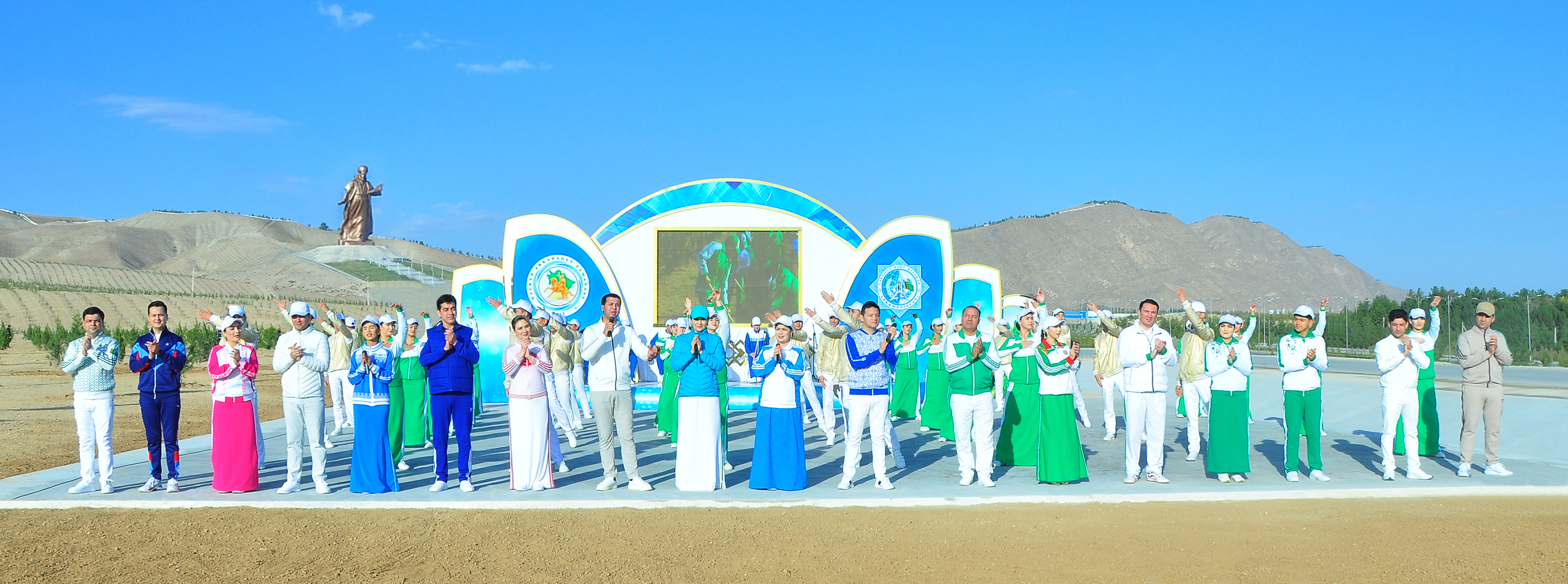 Hormatly Prezidentimiz bir tarapynda türkmen halkynyň beýik akyldary Magtymguly Pyragynyň belent başly heýkeliniň seleňläp görünýän, beýleki tarapynda bolsa özboluşly binagärlik çözgüdine eýedigi bilen Ginnesiň rekordlar kitabyna girizilen «Türkmenistan» teleradioýaýlymlar merkeziniň ajaýyp binasynyň ýakynynda ýaýbaňlandyrylan köpçülikleýin bag ekmek dabarasynyň geçişini we bu töweregiň özboluşly tebigy aýratynlyklaryny synlady.