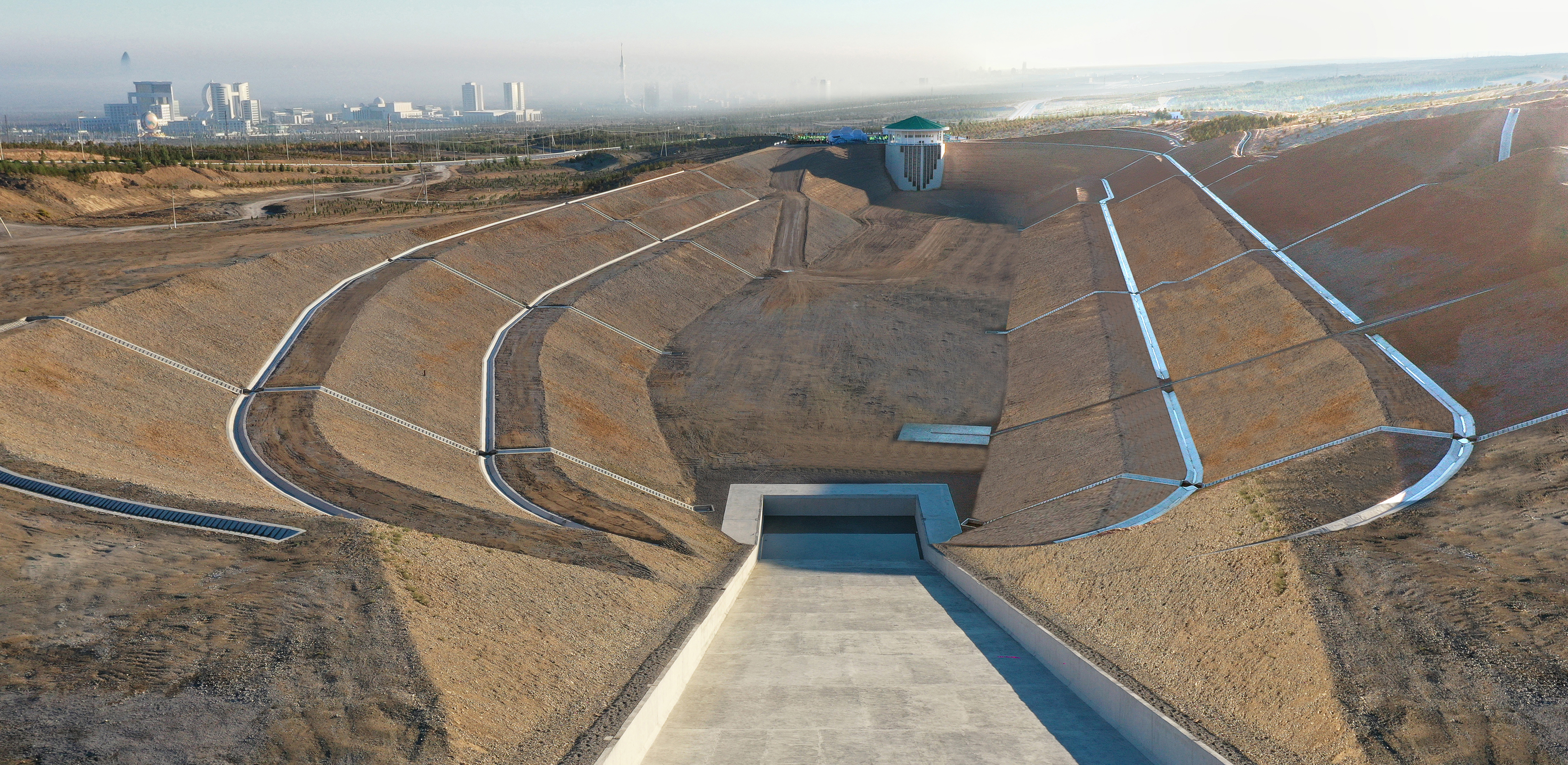 Köpetdagyň eteginde ýerleşen ak mermerli paýtagtymyzyň geografik ýagdaýyny nazara alanyňda, ol sil suw akymlarynyň geçýän zolagynda ýerleşýär. Şunuň bilen baglylykda, bu desgalar toplumynyň işe girizilmegi paýtagtymyzyň inženerçilik-kommunikasiýa ulgamyny halkara ülňülere laýyk getirmäge, birnäçe meseleleri, hususan-da, sil suwlaryny sowmak, sil akabalaryny hem-de golaýdaky çäkleri sil suwundan goramak boýunça wezipeleri çözmäge mümkinçilik berer. Ulanmaga berlen sil suwlaryny sowujy desgalar toplumy innowasion inženerçilik-tehniki taslamadyr. Onuň täsinligi desgalaryň düzümleýin gurluşynyň ulgamyndan, Köpetdagyň eteginiň tebigy howa, düzümleýin-tektonik hem-de inženerçilik-geologik şertleriniň täsinligini nazara almak bilen gurlan sil sowujy desgalaryň ýerleşişinden ybaratdyr.