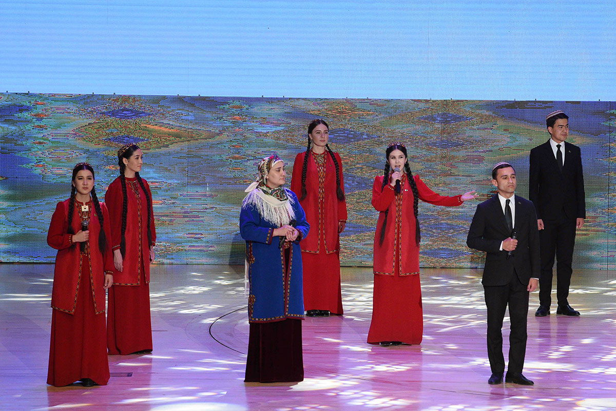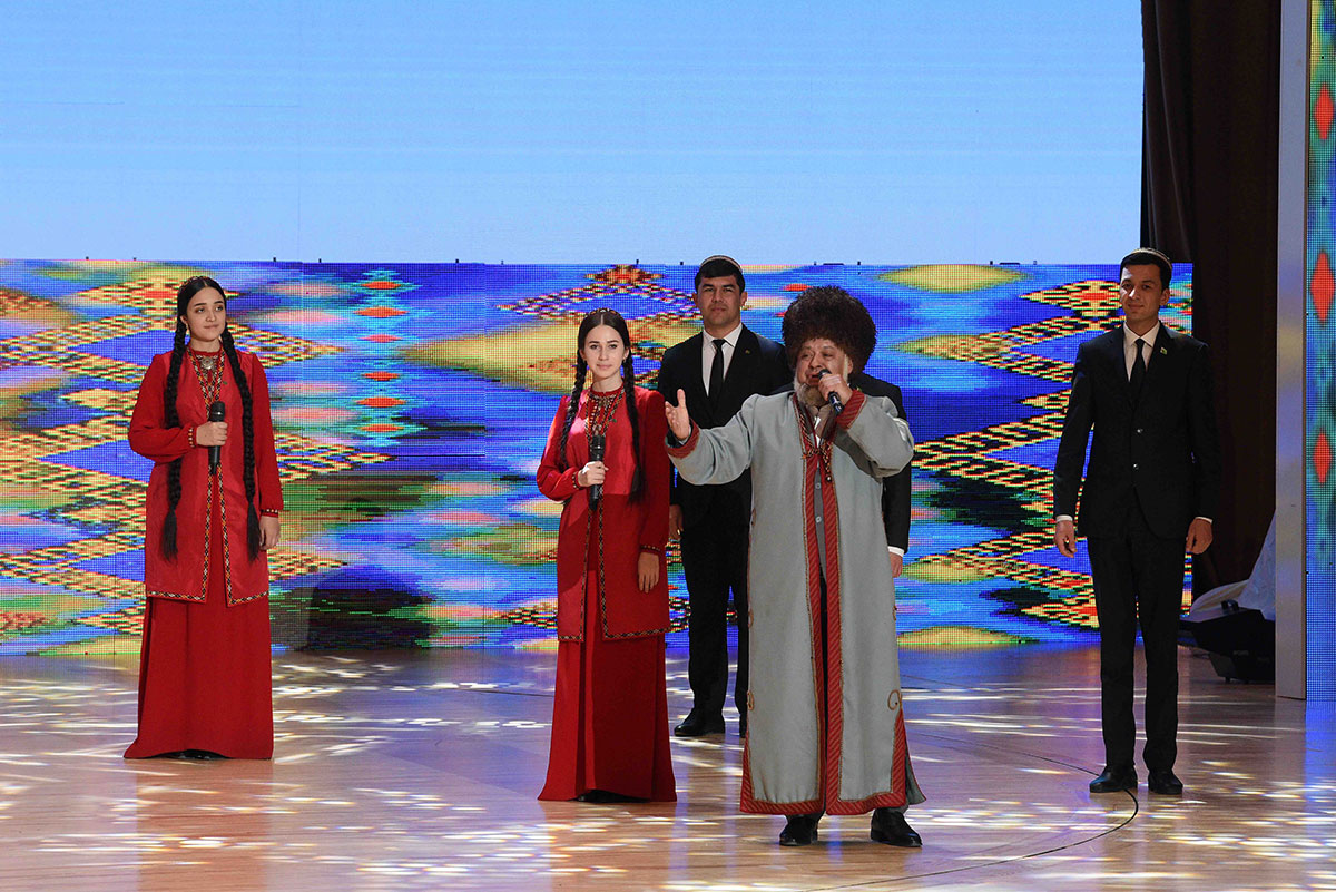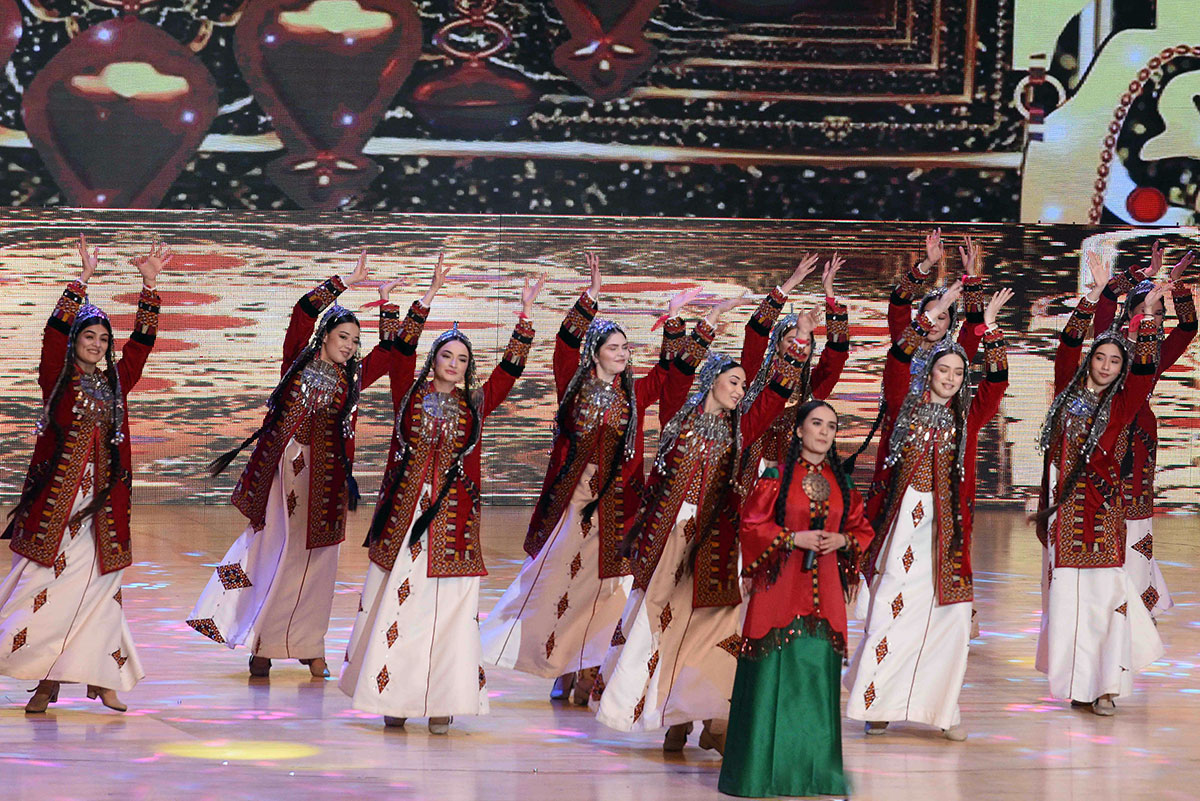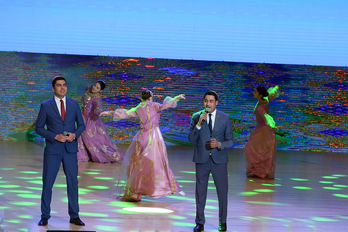 Konsertde halk aýdym-sazlary bilen birlikde häzirki zaman meşhur aýdymlar, tans kompozisiýalary ýerine ýetirildi. Konsert maksatnamasy türkmen halkynyň Milli Lideri Gurbanguly Berdimuhamedowyň döreden we beýik özgertmeler eýýamynyň nyşanyna öwrülen “Öňe, öňe, diňe öňe, jan Watanym Türkmenistan!” atly aýdym bilen jemlendi.