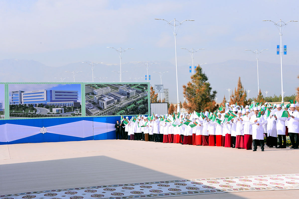 Türkmen halkynyň Milli Lideri, Türkmenistanyň Halk Maslahatynyň Başlygy Berkarar döwletiň täze eýýamynyň Galkynyşy döwründe jemgyýetimiziň durmuşyndaky ajaýyp waka — häzirki döwrüň iň ýokary talaplaryna laýyk gelýän Halkara onkologiýa ylmy-kliniki merkeziniň, Halkara pediatriýa merkeziniň hem-de Stomatologiýa merkeziniň düýbüniň tutulmagy bilen dabara gatnaşyjylary we ähli halkymyzy ýene-de bir gezek tüýs ýürekden gutlap, düýbi tutulýan binalar toplumynyň halkymyza uzak ýyllaryň dowamynda hyzmat etmegini arzuw etdi.