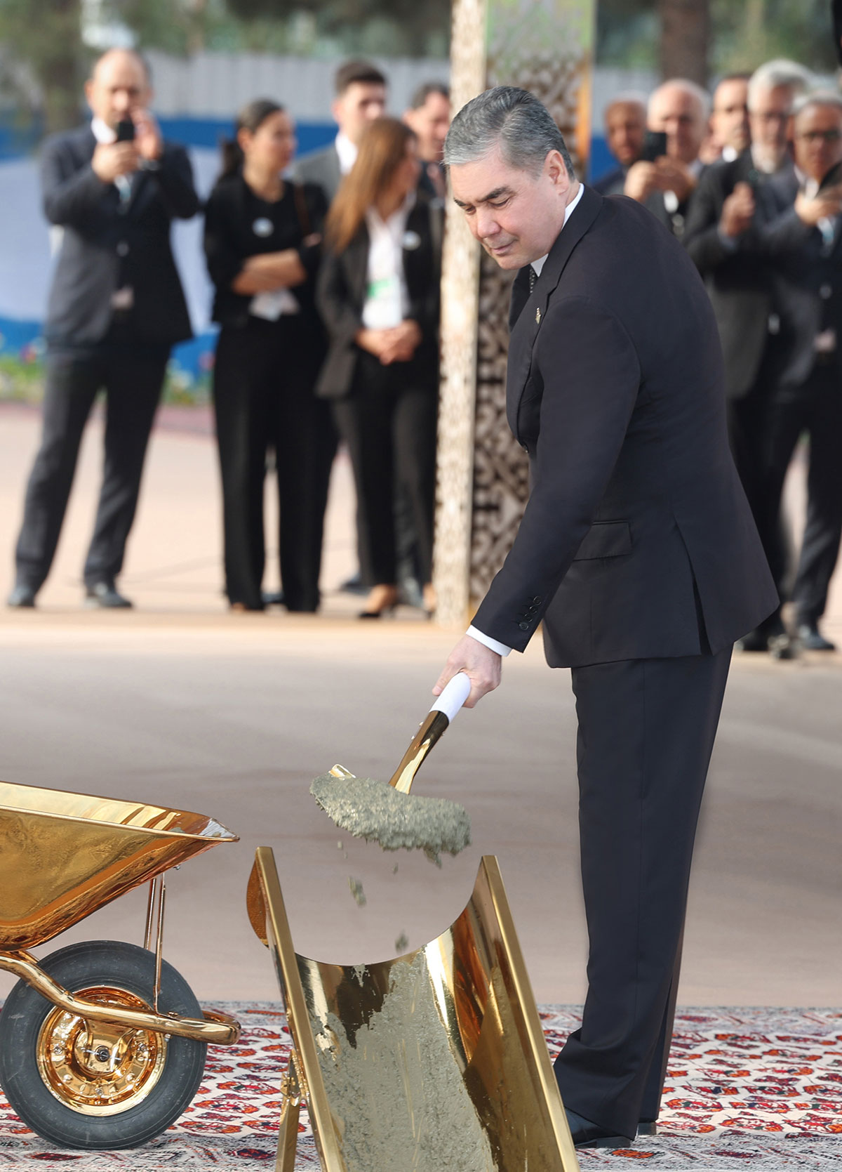 Gurluşygyň alnyp baryljak ýeriniň ýanyndaky meýdançada ykbalyny mähriban Watanymyzyň abadançylygyna we halkymyzyň bagtyýar durmuşynyň üpjün edilmegine bagyşlan türkmen halkynyň Milli Lideriniň şanyna aýdymlar belentden ýaňlandy.
