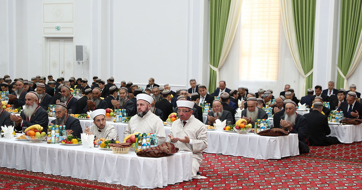 Türkmenistanyň müftüsi tebärek çykandan soňra, sadaka gatnaşyjylara nahar çekildi. Tagam dadylandan soň, aýat-töwir edildi.