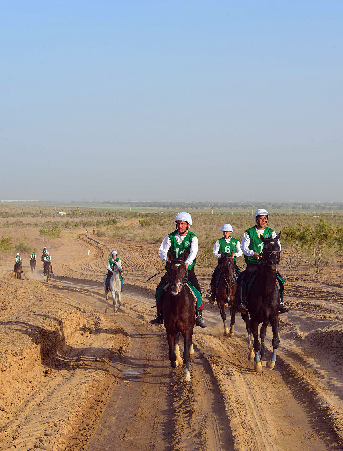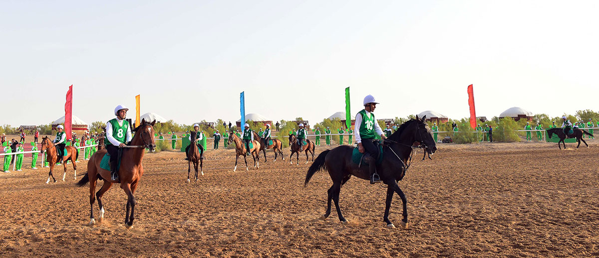 Köpetdagyň eteginden başlap, at çapyşygyna gatnaşyjylar atlaryň beden taýdan sagdynlygyny we ýeňiş gazanmak üçin ajaýyp erkini görkezip, birinji basgançagy gysga wagtda geçdiler.