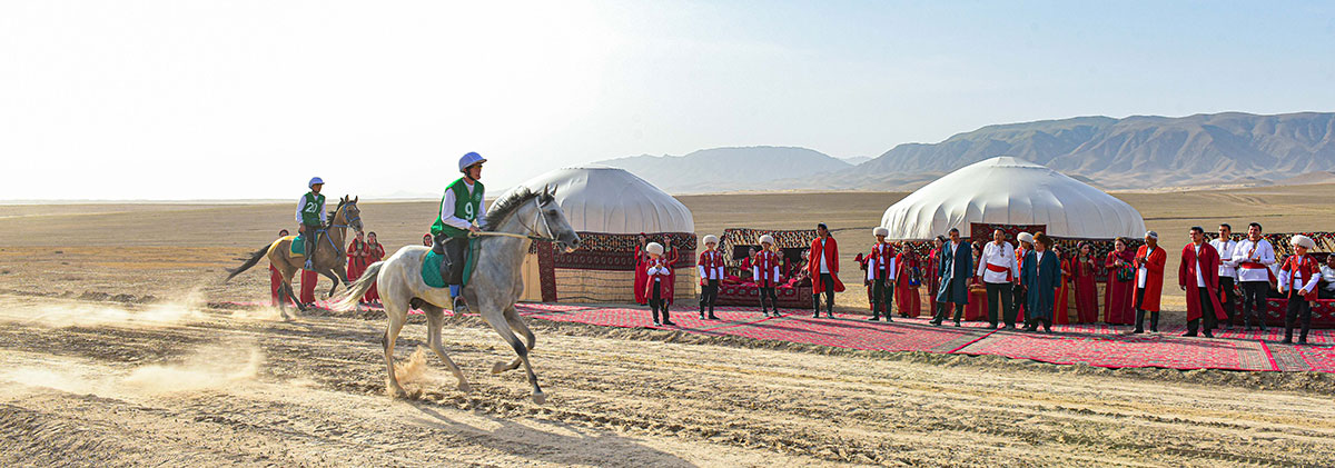 Türkmen bedewiniň milli baýramy mynasybetli Ahal welaýatynyň Ak bugdaý etrabynyň çäginde uzak aralyga atly ýöriş bäsleşigi ̶ marafon ýaryşy geçirildi.