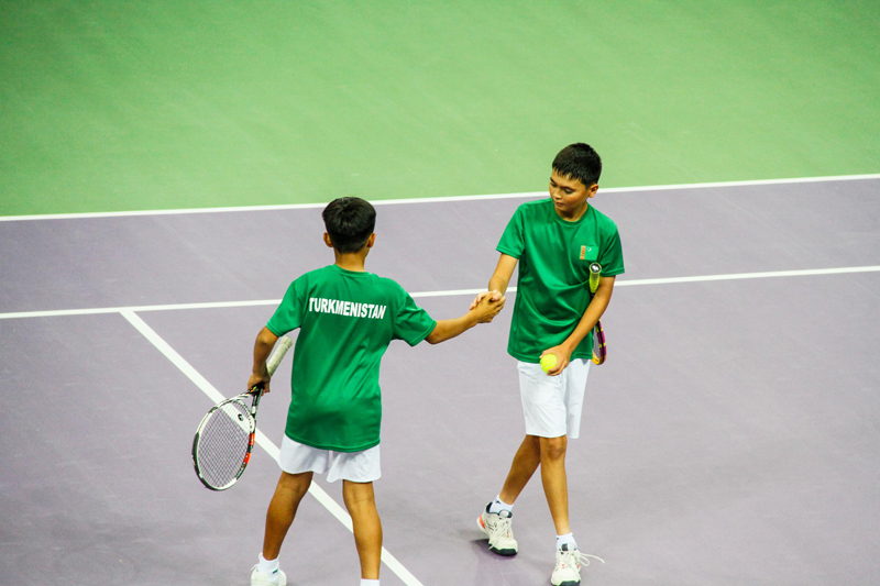 Türkmenistanyň ýetginjekler ýygyndy toparynyň tälimçisi Ýuriý Rogusskiniň şägirtleri oýna aýgytly girişdiler. Ýekelikde geçirilen ilkinji duşuşykda ildeşimiz Aly Geldiýew Ahmad Wositowdan 6:2, 6:1 hasabynda üstün çykdy. Ýekelikde geçirilen ikinji oýunda ildeşimiz Süleýman Hudaýberdiýew garşydaşy Alijon Mirzoýewi 6:0, 6:2 hasabynda ýeňmegi başardy. Jübütleýin duşuşykda ildeşlerimiz Aly Geldiýew we Nazargeldi Amangeldiýew Alijon Mirzoýewi we Ahmad Wositowy 6:1, 6:1 hasabynda ýeňdiler. Şeýlelikde, ildeşlerimiz tennis boýunça Merkezi Aziýa ýurtlarynyň sebitleýin ýaryşynda ilkinji gezek kümüş medaly gazanmagy başardylar we Aziýanyň ýaryşynyň jemleýji tapgyryna çykdylar. Üçünji orna Özbegistanyň ýygyndy topary mynasyp boldy.