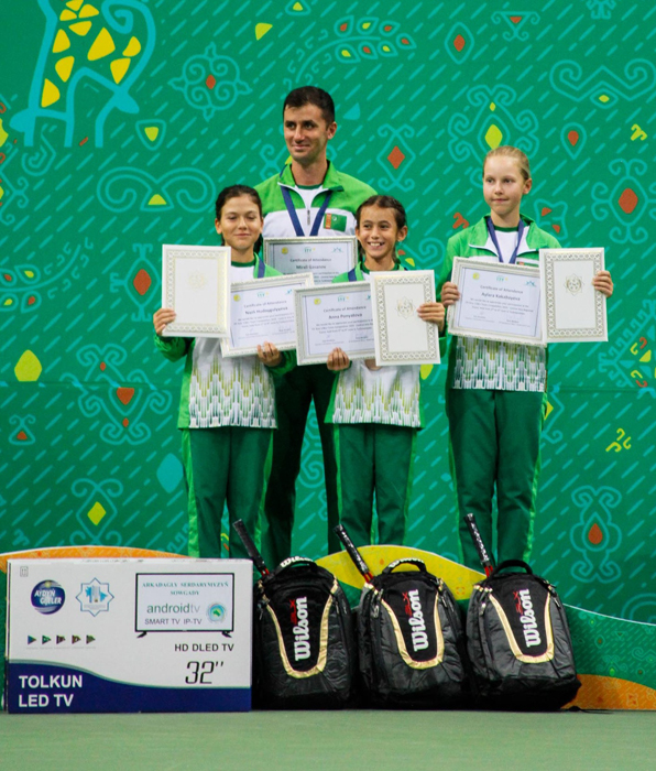 Soňra tennis boýunça Merkezi Aziýa ýurtlarynyň sebitleýin ýaryşynyň ýeňijilerine Halkara tennis federasiýasynyň medallary we güwänamalary, hormatly Prezidentimiz Serdar Berdimuhamedowyň, şeýle-de türkmen halkynyň Milli Lideri, Halk Maslahatynyň Başlygy Gurbanguly Berdimuhamedowyň adyndan gymmat bahaly sowgatlar gowşuryldy.