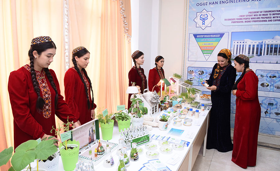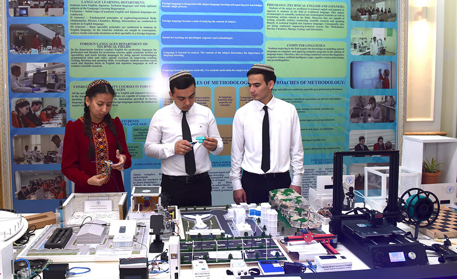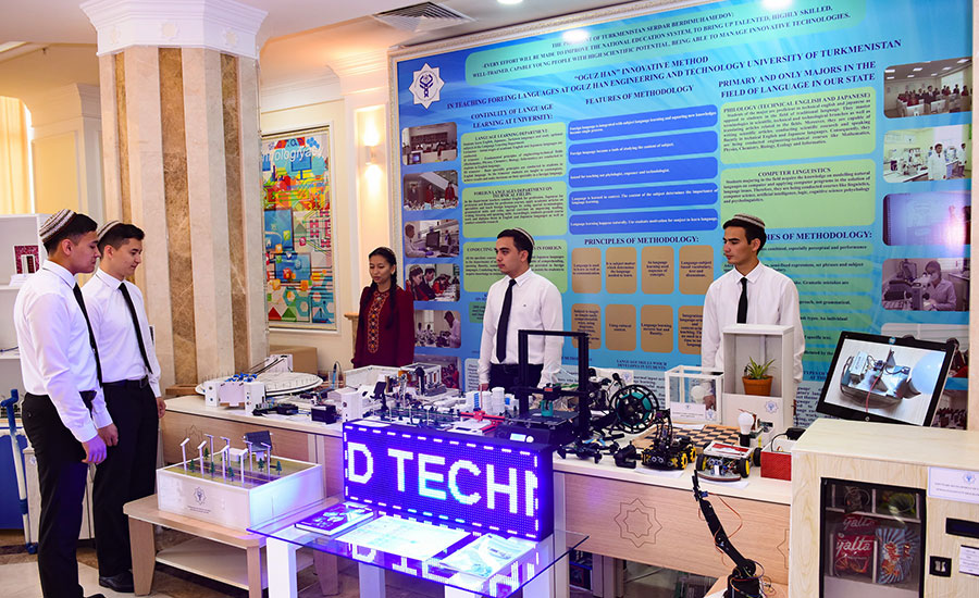 Bu ýerde ýokary okuw mekdepleriniň talyplarynyň, ýaş mugallymlaryň taýýarlan innowasion taslamalarynyň we tehnologiýalarynyň sergisi ýaýbaňlandyryldy. Sergide Türkmenistanyň Ylymlar akademiýasynyň institutlarynyň synag-tejribe we eýýäm önümçilige ornaşdyrmak tapgyryndaky innowasion hem-de kompýuter tehnikalary, mikroelektronika, biotehnologiýa, himiýa, interaktiw enjamlaşdyryş ugurlaryndaky institutlarynyň işläp taýýarlamalary görkezildi.