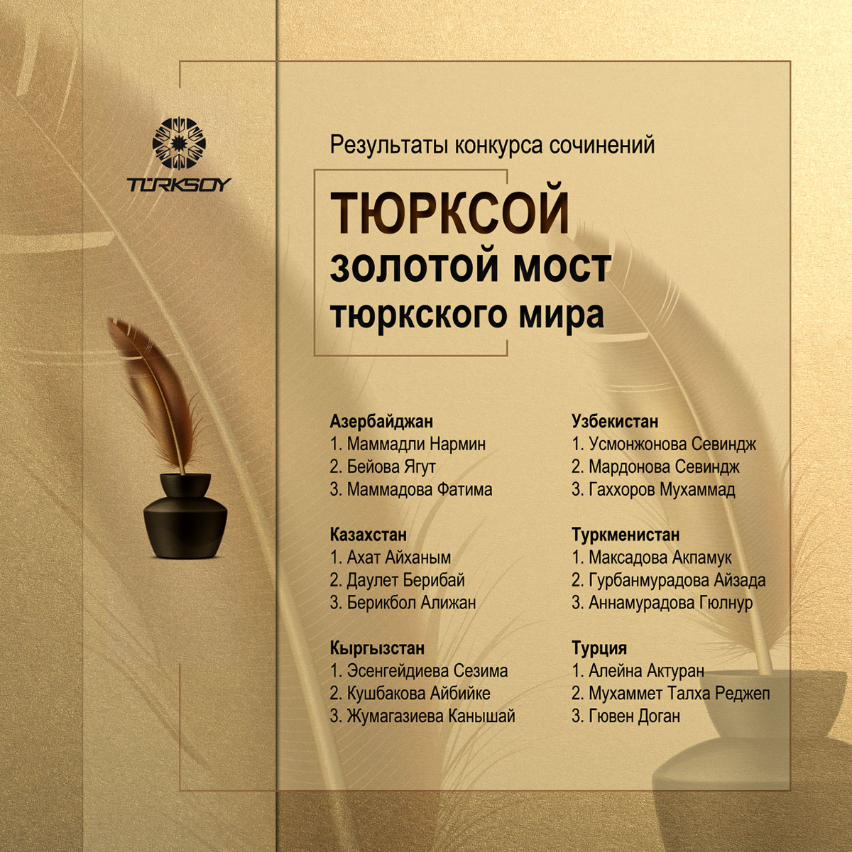 Türki medeniýetiň halkara guramasynyň (TÜRKSOÝ) döredilmeginiň 30 ýyllygy mynasybetli Azerbaýjanyň, Gazagystanyň, Gyrgyzystanyň, Özbegistanyň, Türkiýäniň we Türkmenistanyň orta mekdepleriniň okuwçylarynyň arasynda «TÜRKSOÝ türk dünýäsiniň altyn köprüsidir» atly temasyndan düzme ýazmak bäsleşigi geçirildi.