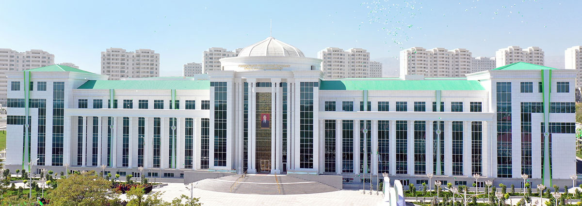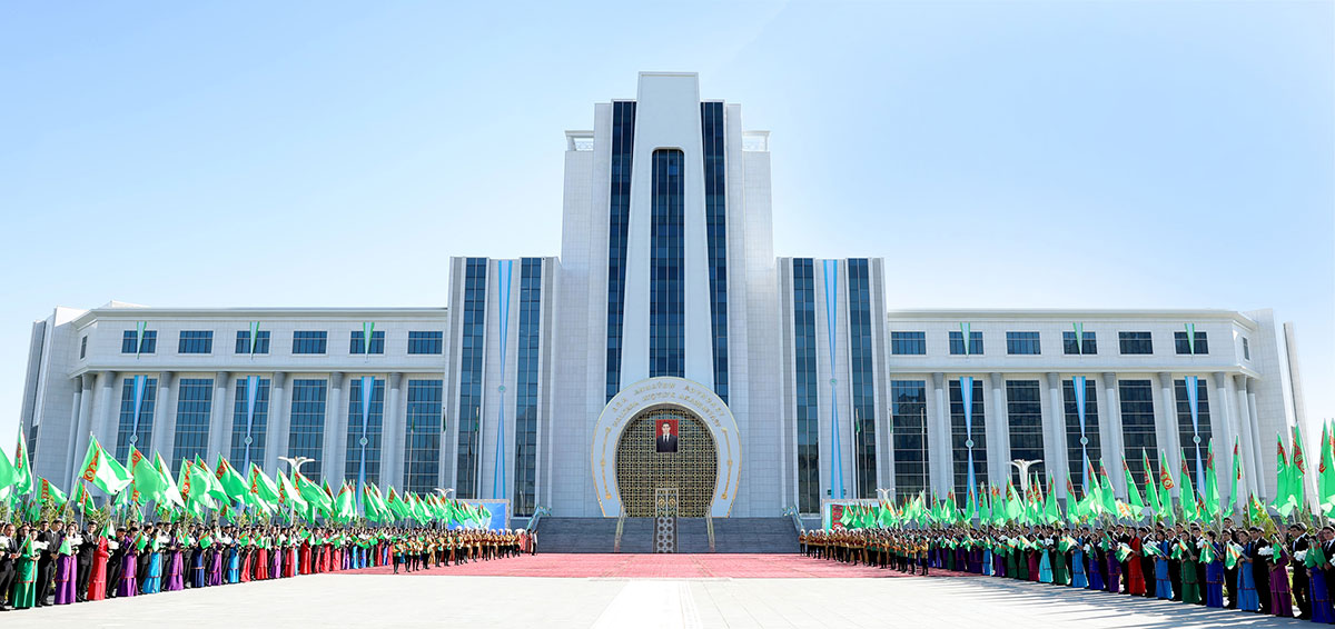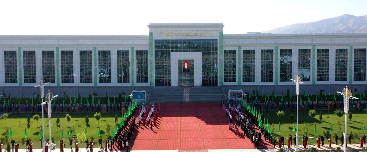 Döwlet Baştutanymyz Serdar Berdimuhamedow okuw binasyna barýar. Binanyň eýwanynda Türkmenistanyň Prezidentiniň ýanyndaky Döwlet gullugy akademiýasyna şahadatnamalary gowşurmak dabarasy boldy.