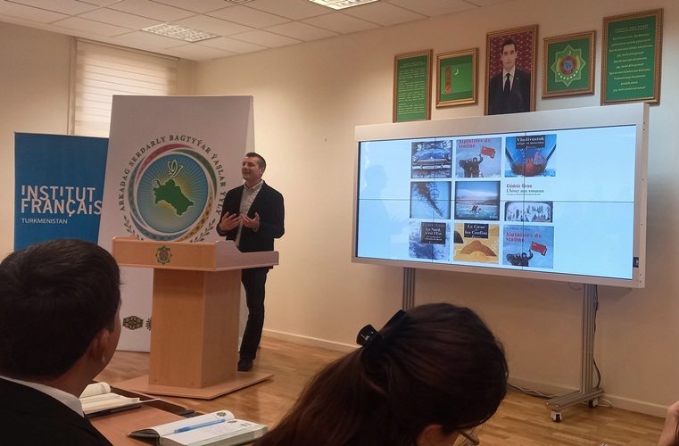 Syýahatçy fransuz ýazyjysy Sedrik Gra Türkmenistana saparynyň çäginde Döwletmämmet Azady adyndaky Türkmen milli dünýä dilleri institutyna we Magtymguly adyndaky Türkmen döwlet uniwersitetine baryp gördi.
