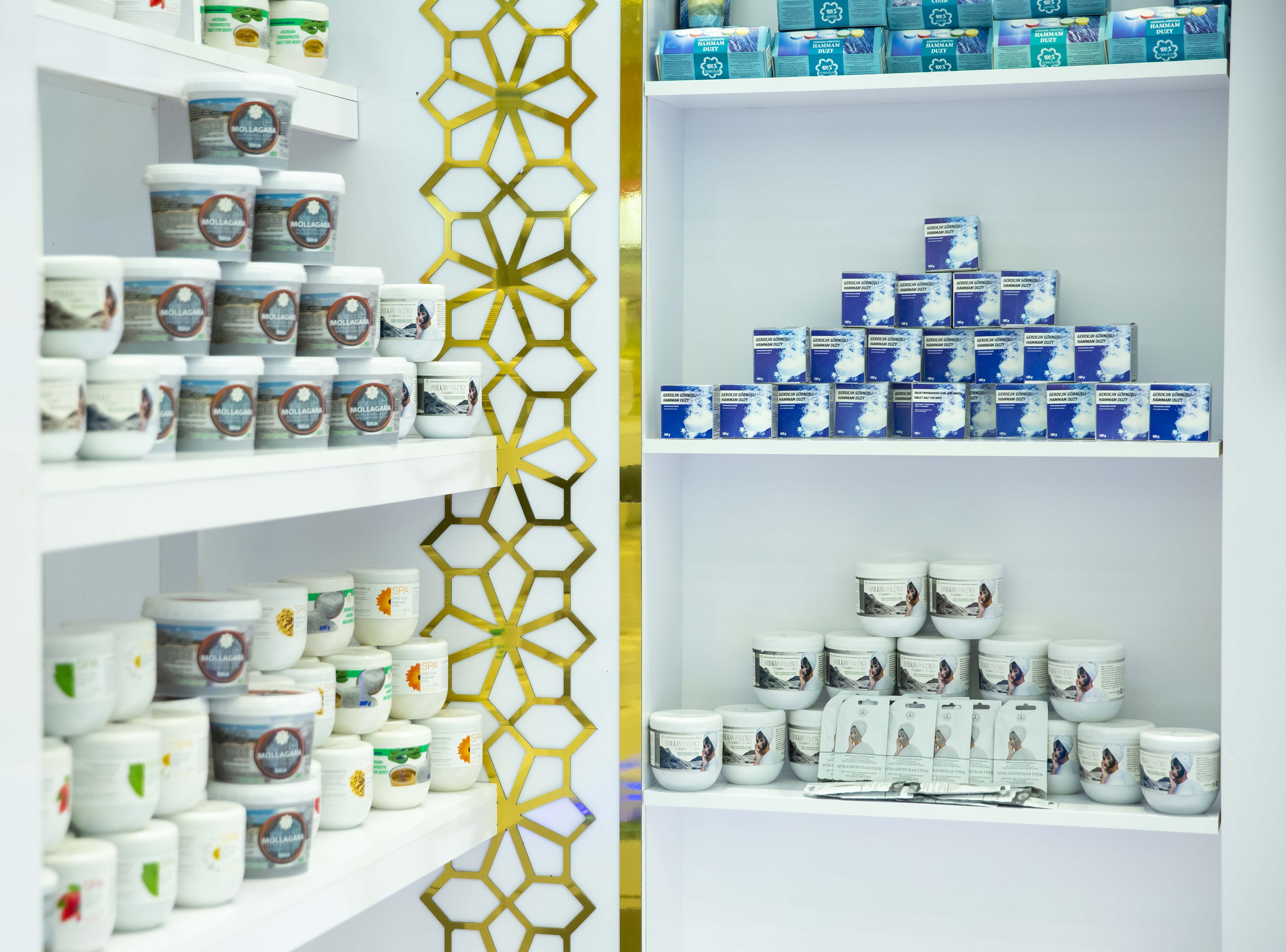 «Baýramaly», «Berzeňňi», «Bagabat», «Arçman», «Ýyly suw», «Farap», «Mollagara», «Daşoguz» şypahanalarynyň we saglygy dikeldiş merkezleriniň diwarlyklary serginiň aýratyn bölümini düzýär. Häzirki günde olaryň her biri saglygy dikeltmek üçin döwrebap merkez bolup, enjamlaşdyrylyşy, hödürleýän hyzmatlary babatda dünýä ölçeglerine laýyk gelýär. Okgunly ösýän we Hazar deňziniň ekologik taýdan arassa kenarynda ýerleşýän «Awaza» milli syýahatçylyk zolagy giň halkara hyzmatdaşlyk üçin gyzyklanma bildirýän taraplara çäksiz mümkinçilikleri açýar. Bejergi we saglygy dikeltmegi guramak nukdaýnazaryndan, türkmen şypahanalary lukmançylyk hyzmatlarynyň, ýurdumyzyň bejergi serişdeleriniň eksport gymmatyny ýokarlandyrmak bilen, häzirki günde dünýä derejesine çykýar.